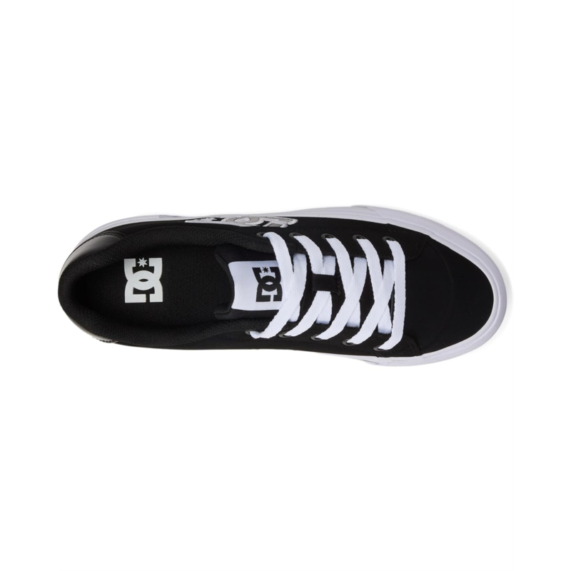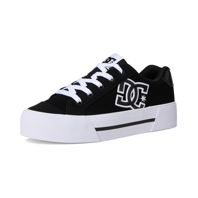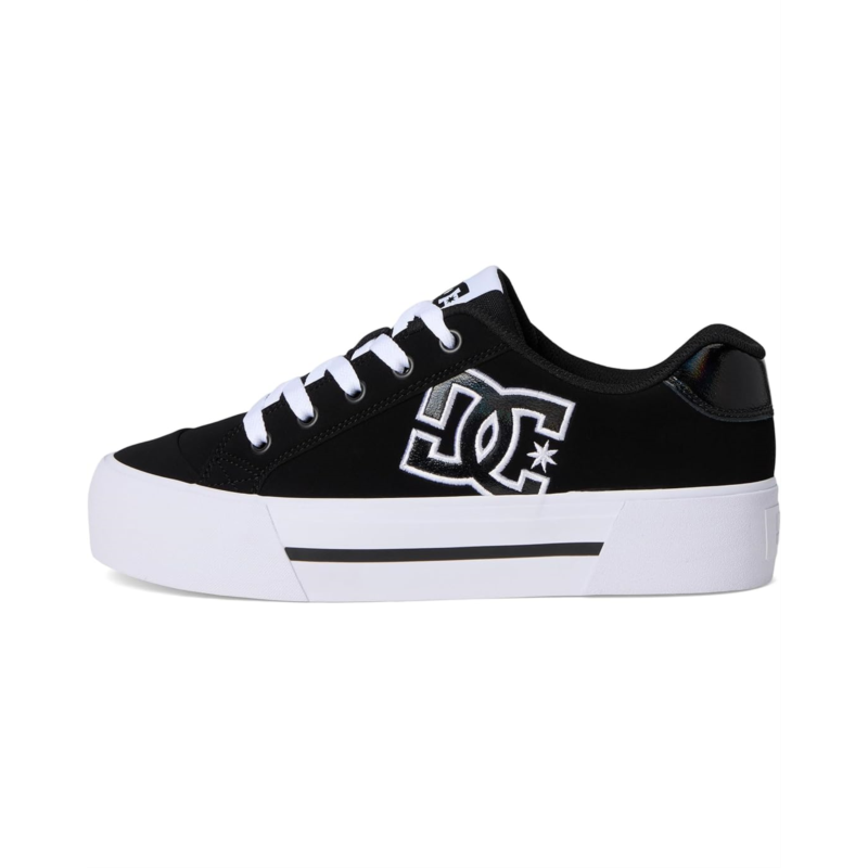 - Featuring DC''s trademarked ''Pill Pattern'' tread vulcanized construction, the DC Chelsea Platform shoes are a must-have for your footwear collection. Their leather upper is styled with metal eyelets, a lace-up closure, a large embroidery quarter logo, and vent holes for breathability. These sneakers are made of a textile insole and lining. Comfortable and stylish, these platform sneakers work for different occasions.