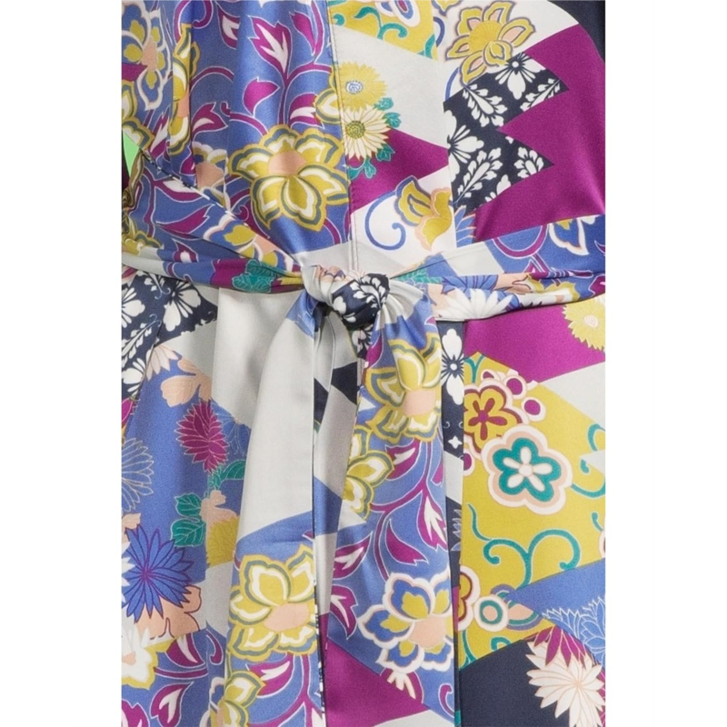 - Indulge in a luxurious hand feel and finish and rejoice in the beautiful, bold prints in rich colors of the N by Natori Deco - Satin Robe. The spandex construction allows comfortable wearing and the timeless prints are versatile for wearing in or out. The calf-length kaftan features an open-front design with a waist tie closure and long loose sleeves.