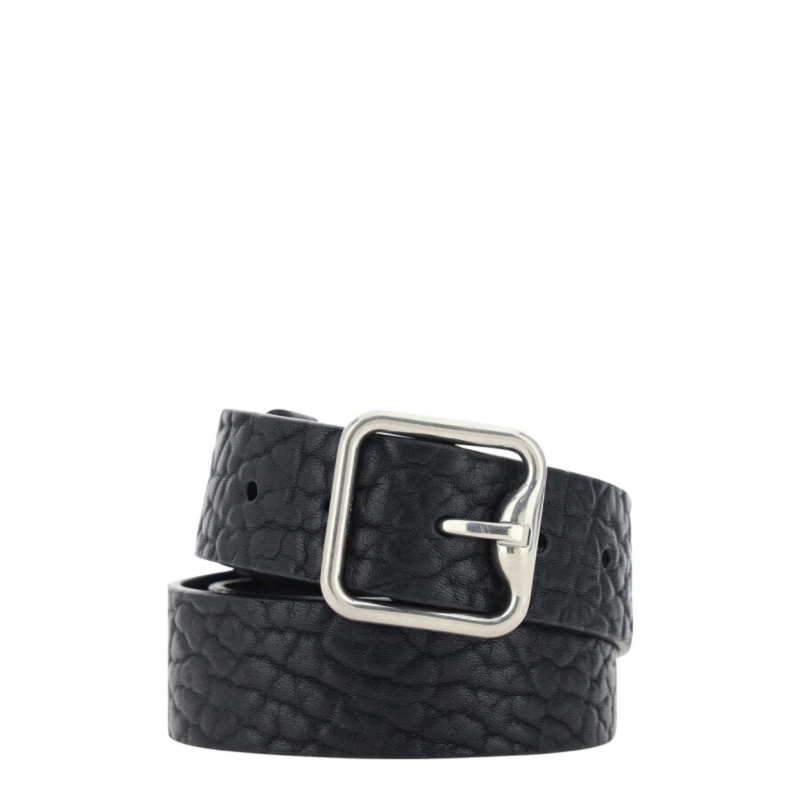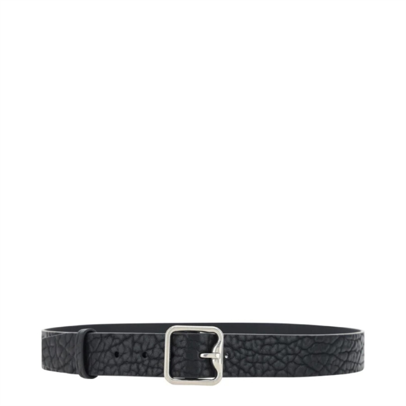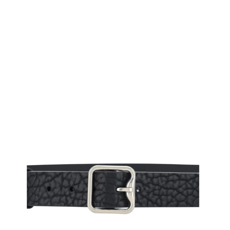 Burberry Men''s Belts. Fashion category: Belts. SKU: 8075260. Material: Leather. Color: Black/Silver. Burberry B-Buckle Leather Belt. This leather belt features a textured finish, a logo-buckle detail, a silver-tone buckle fastening, punched holes, and an adjustable fit. 100% Leather. Made in Italy.