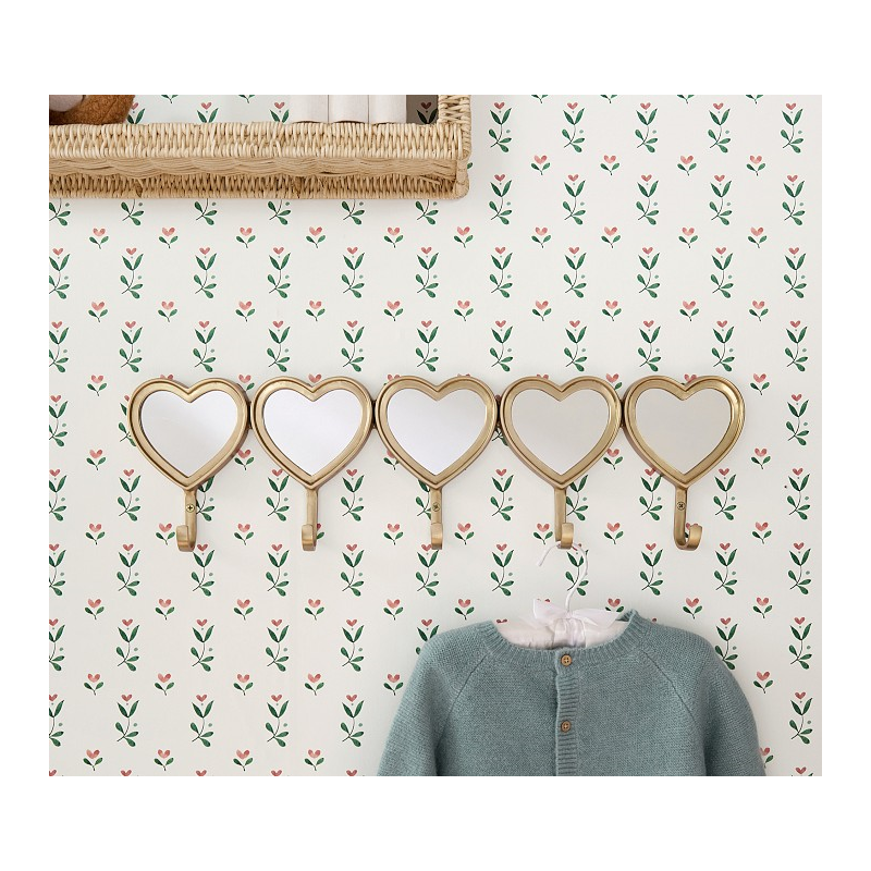 Give them a little extra love. Spanned by heart-shaped mirrors, our rack adds sweet sparkle to their space and gives them five sturdy metal hooks for hanging coats, scarves or accessories.