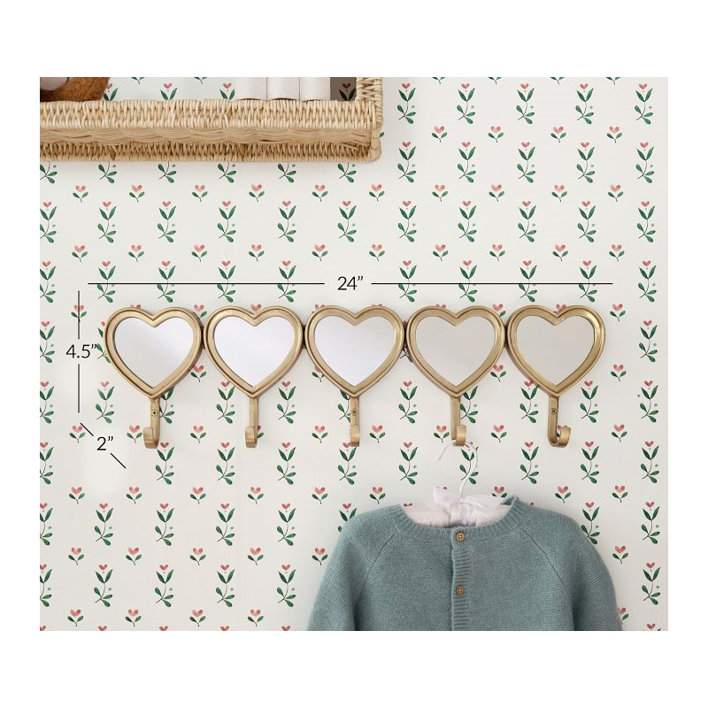 Give them a little extra love. Spanned by heart-shaped mirrors, our rack adds sweet sparkle to their space and gives them five sturdy metal hooks for hanging coats, scarves or accessories.
