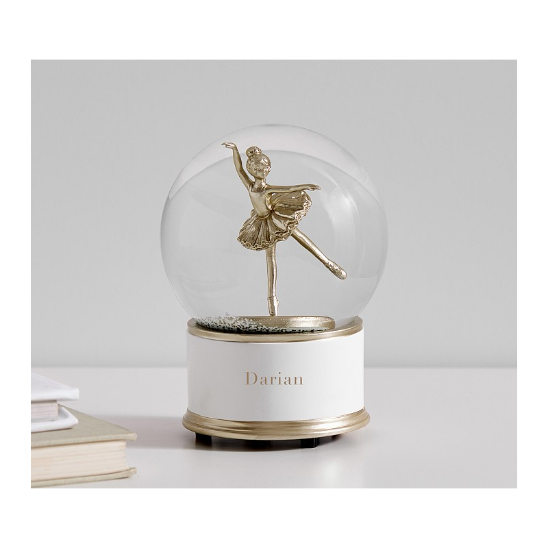 - Snow globe features a spinning Ballerina.
