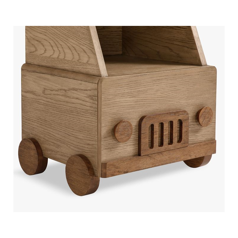To start the dreamtime convoy, park our Truck Nightstand next to their bed. Set on decorative wheels, the whimsical wooden vehicle combines a spacious top, an open cubby with wire management for their charging cords and a deep drawer with a bumper, grille and headlight handles. Built to last from premium materials and oak veneer, it offers enduring quality?right off the lot.