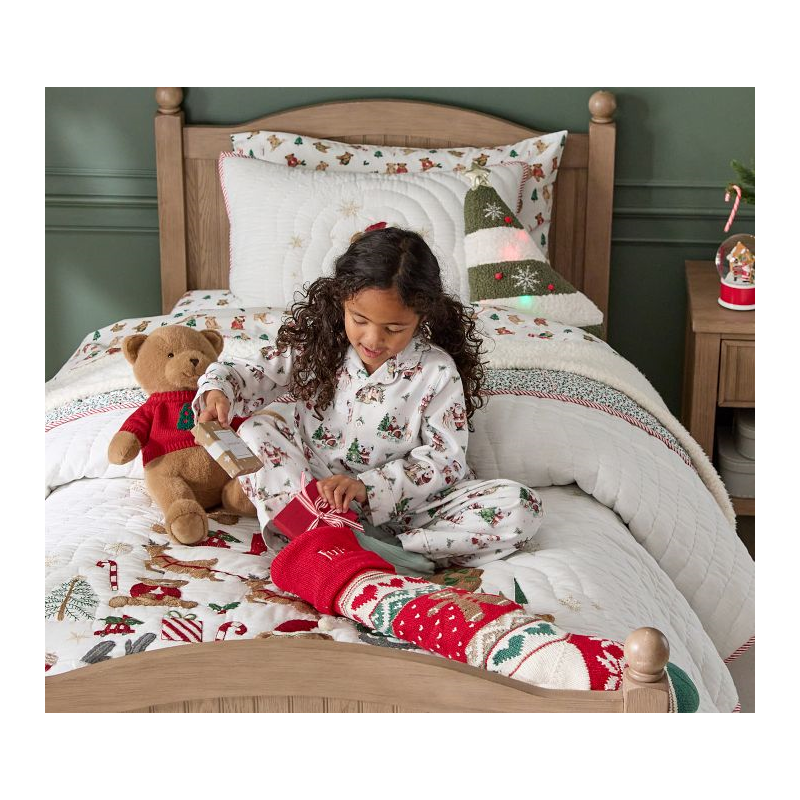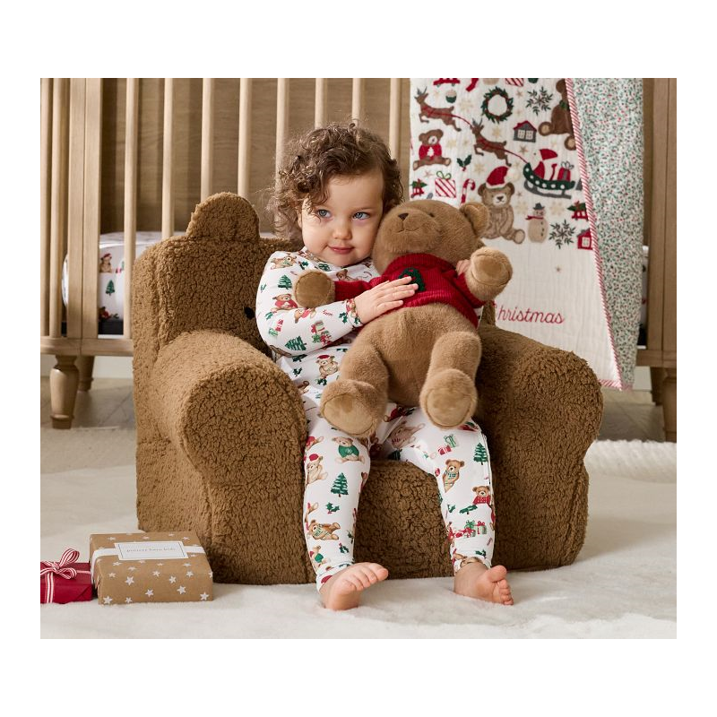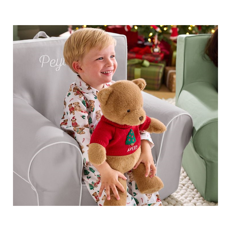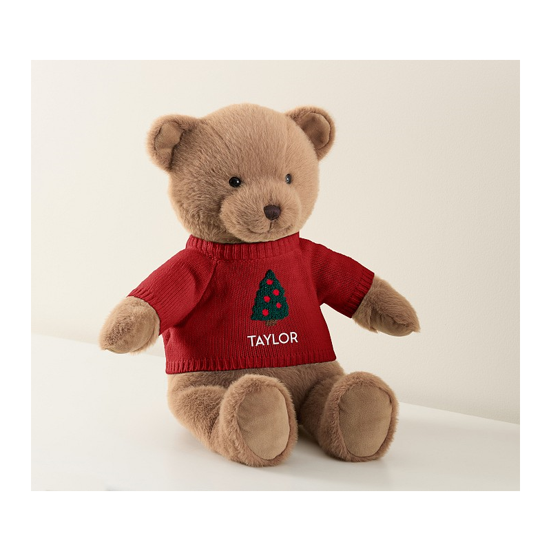 A cozy classic, our Christmas Teddy Bear will be beloved by your little cub. Crafted from super-soft fibers and detailed with adorable facial features, this snuggly sidekick is dressed in a jolly red sweater emblazoned with a tree motif. Great as a holiday gift or toy-themed decor.