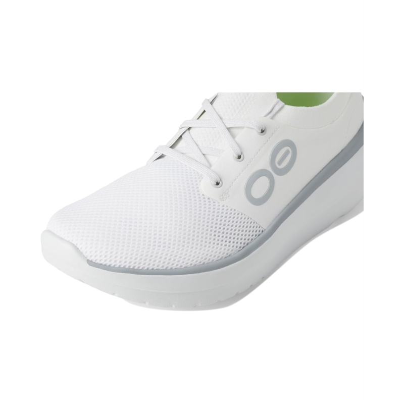 Hit the pavement in comfort in the OOFOS OOmy Stride shoes. This lace-up closure shoe offers a round toe silhouette, breathable mesh upper and lining, and a mesh insole. Recovery Footwear designed to support the arch and relieve pressure on the feet and legs.