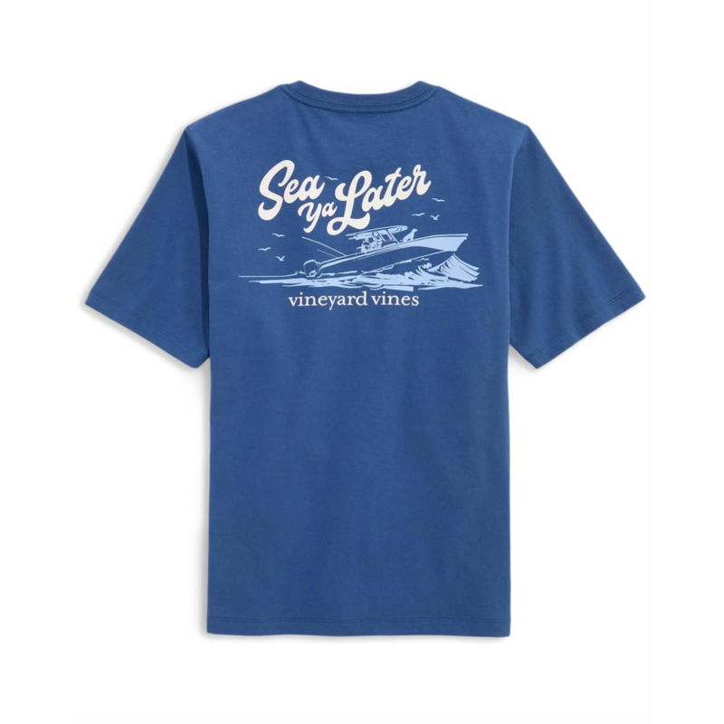 Say goodbye to boring tees and hello to fun choosing the Vineyard Vines Sea Ya Later Short Sleeve Tee. Crafted from soft, breathable cotton, it features a relaxed fit that''s perfect for layering or wearing solo. The comfy tee is designed with a crew neckline, short sleeves, and a straight hem. The patch pocket on the left chest adds a cool, functional detail.