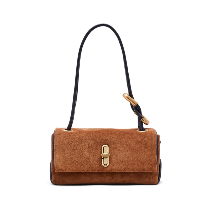 - The soft texture of Marc Jacobs The Suede Mini Dual Shoulder Bag is complemented by the bold J Marc turnlock closure, adding a touch of signature edge. The elongated shoulder strap offers hands-free convenience, while the hardware detail lends a modern, architectural feel.