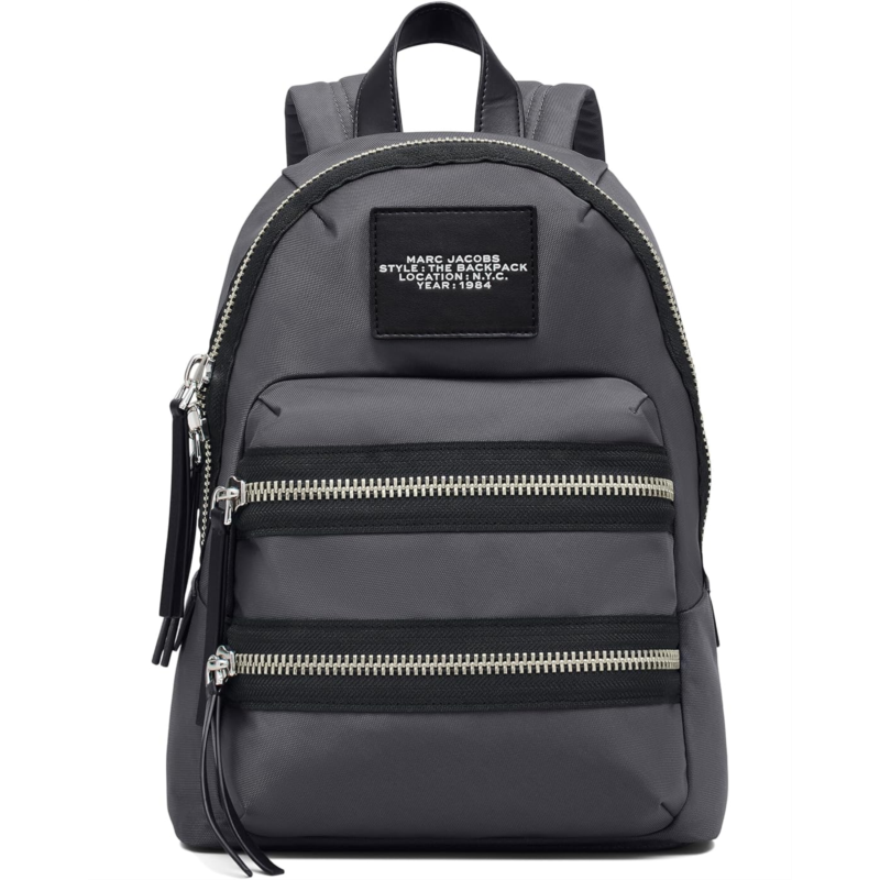 - Store and organize your essentials in the functional and stylish Marc Jacobs The Biker Nylon Medium Backpack. The spacious bag has a nylon construction and is designed with a top handle, and lightly padded adjustable straps for a comfortable fit. The backpack also has a zippered top closure for easy access to essentials.