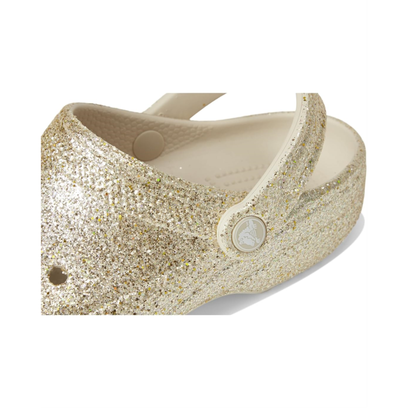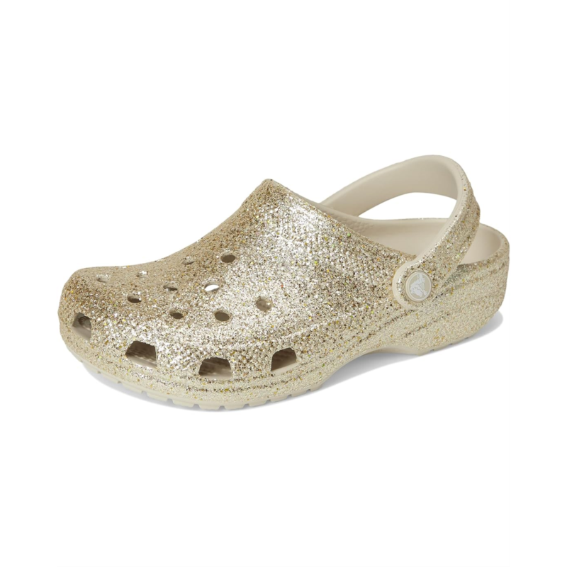 - The Croc Kids Classic Glitter Clog looks chic and features an allover glitter detail. It offers comfort and the perfect look for your little one to have fun at parties.