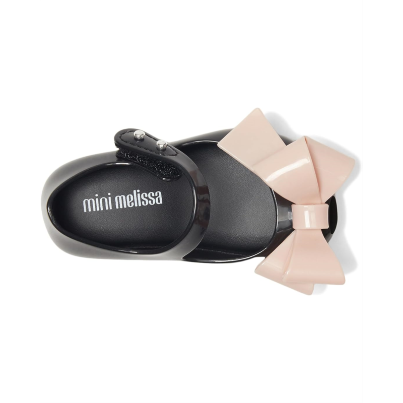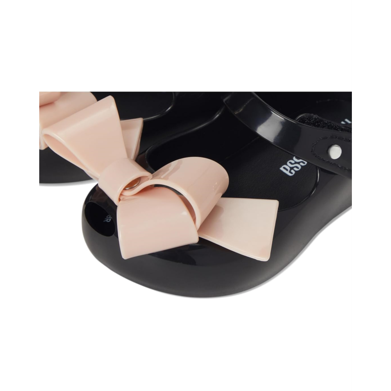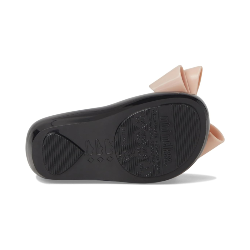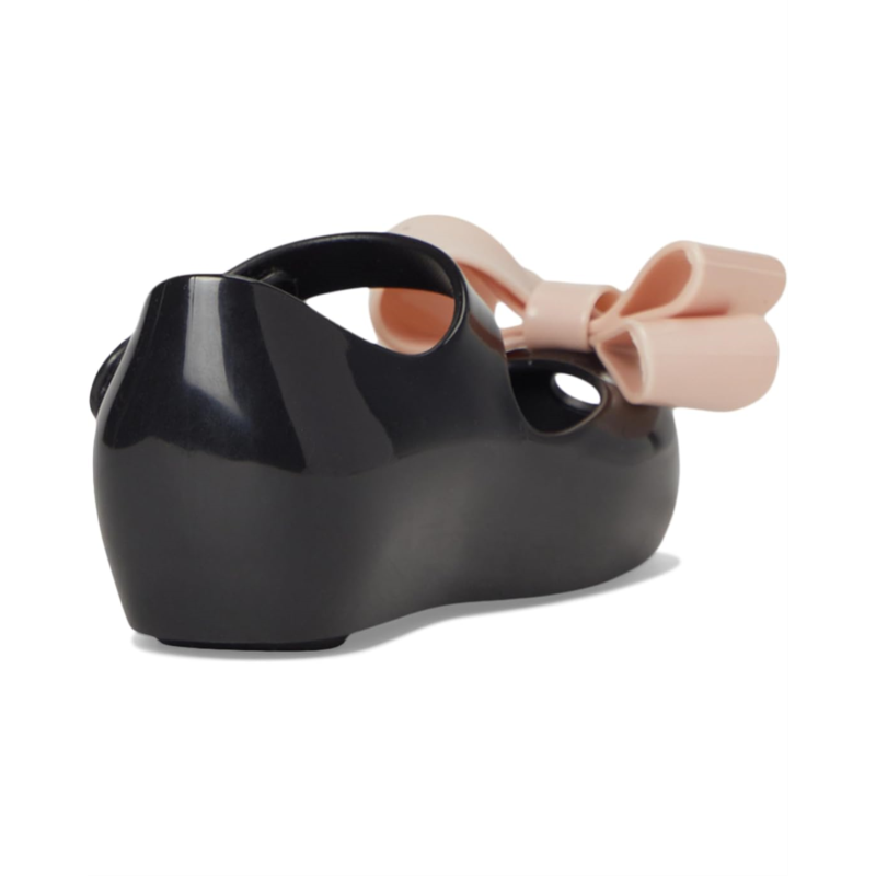 - 100% recyclable, vegan-certified, and water-resistant, the Mini Melissa Ultragirl Classy shoes are ballet flats featuring a double bow on the PVC upper and bubblegum scent. They are made of a rubber insole that makes them comfortable to wear for long hours. Stylish and easy to slip on and off, these ballet shoes work for different occasions.
