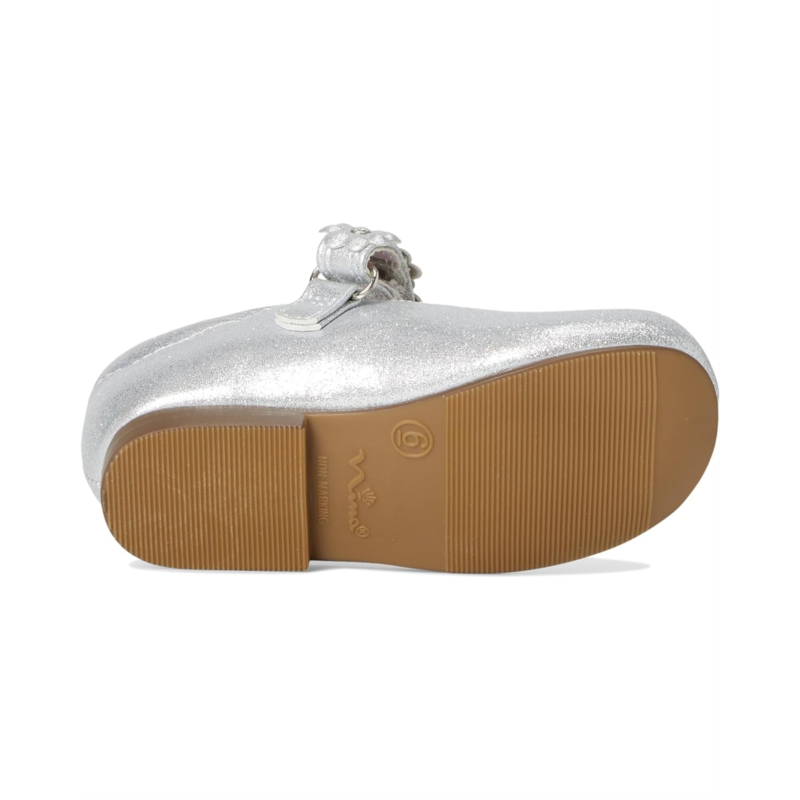 - Let your little one walk in these cute Nina Kids Tuley Sandals, crafted with a shiny man-made upper and adorned with crystal & flower embellishment for that magical touch. the round-toe sandals come with synthetic lining & sock, cushioned memory foam insole for lasting comfort, and flexible, non-slip TPR outsole for steady steps. The adjustable hook-and-loop strap with D-ring provides a secure fit, while the flat sole is added for easy, all-day comfort.