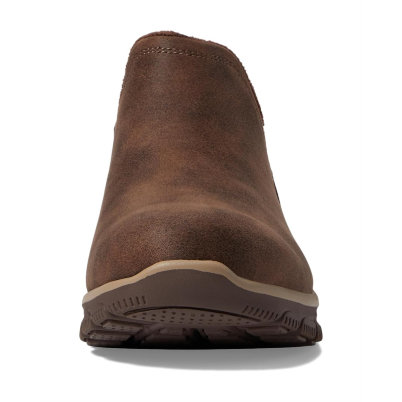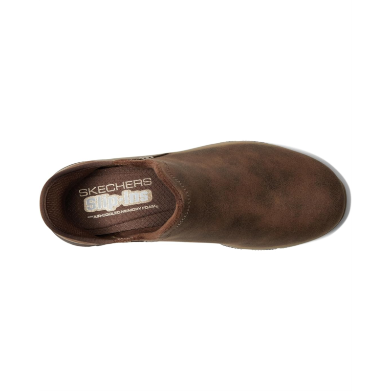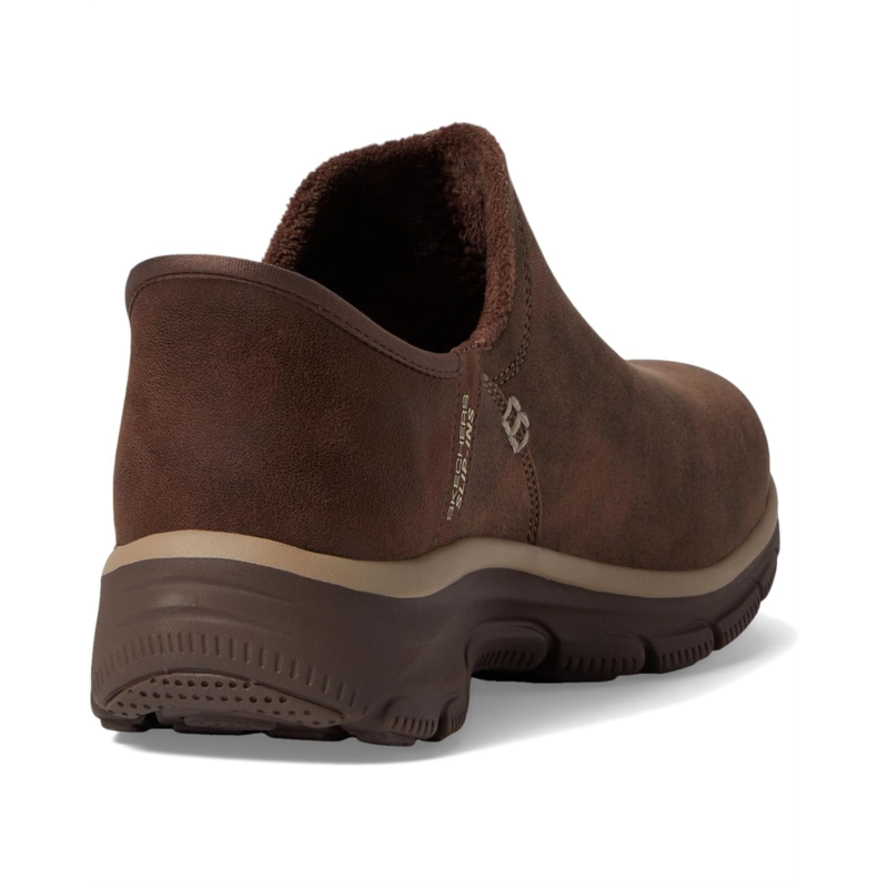 - Let your feet feel in comfort by wearing the SKECHERS Easy Going - Modern Hour - Hands Free Slip-Ins shoes. The boots are designed with exclusive Heel Pullow technology for maximum comfort. The round-toe hiker bootie style features a 3M Scotchgard treated synthetic upper with a faux-fur trim, and a cushioned Skechers Air-Cooled Memory Foam insole.