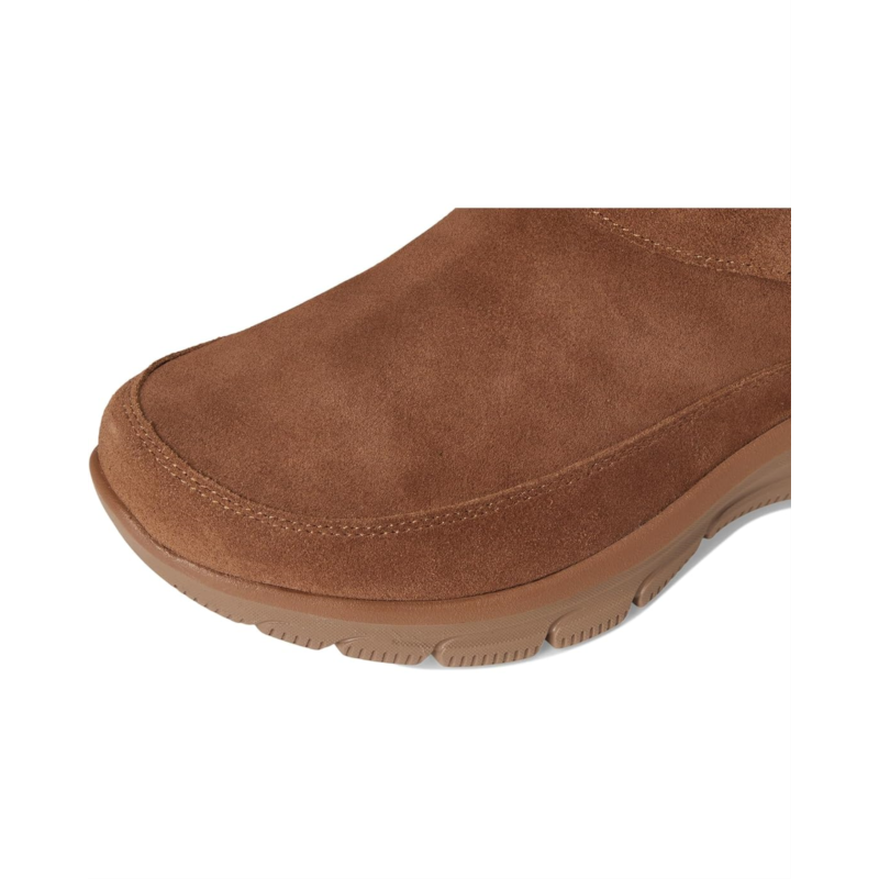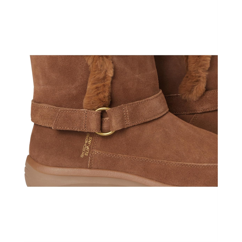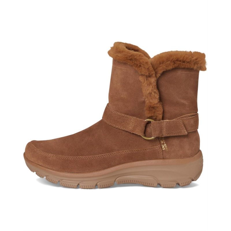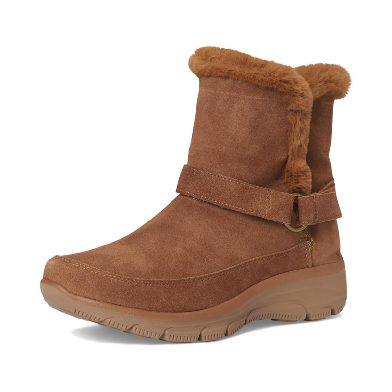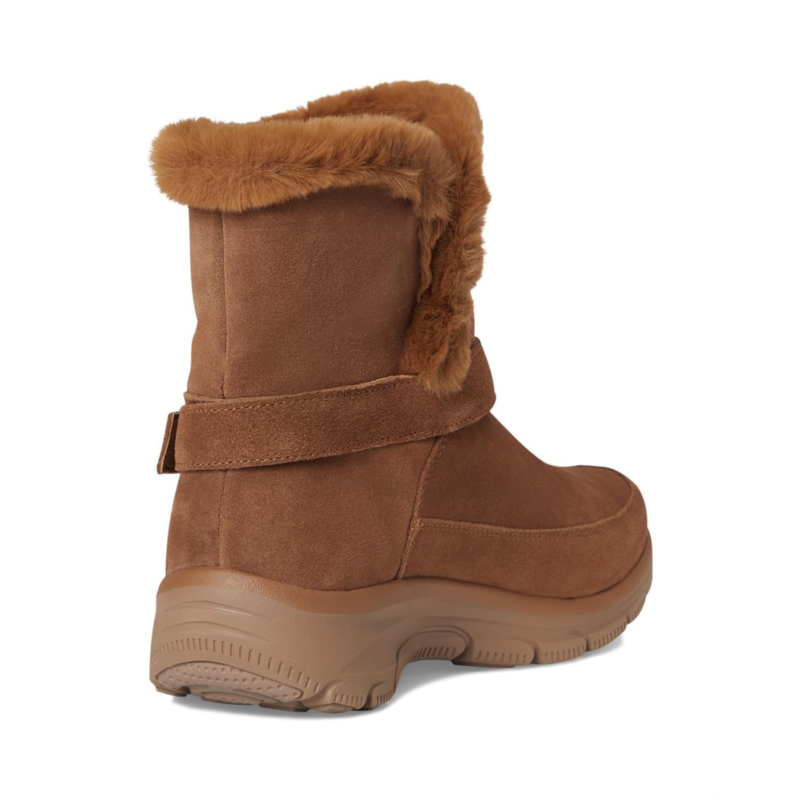 - Simply step into the season with effortless cozy comfort wearing SKECHERS Easy Going - Dreamers Luxe Vibe Hands Free Slip-ins. Designed with the exclusive Heel Pillow, this boot features a 3M Scotchgard treated suede upper with faux fur trim and lining, wrapped buckle detail and a cushioned Skechers Air-cooled Memory Foam insole.