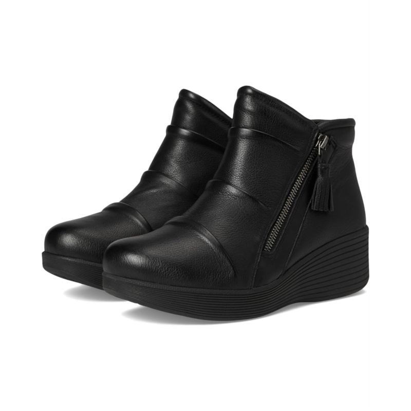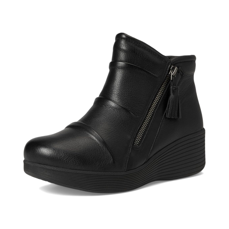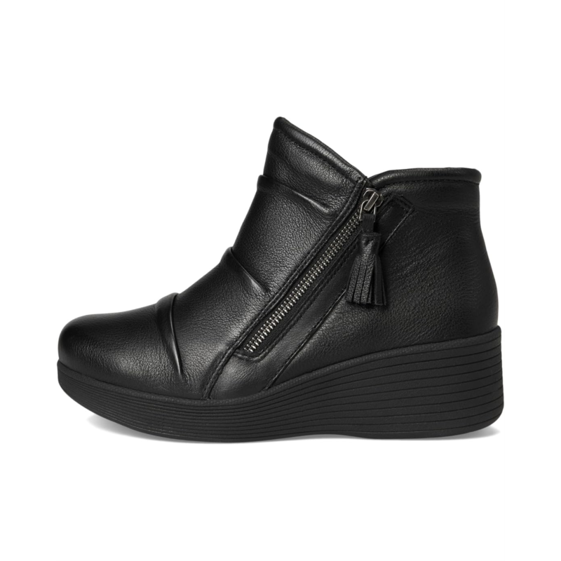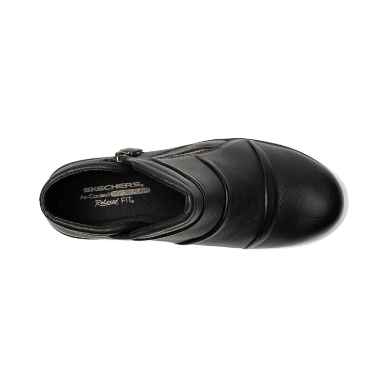 - Confidence in every step wearing SKECHERS Parallel Lite. Designed with a sleek leather upper treated with 3M Scotchguard, it resists water and stains so you stay polished no matter what the forecast brings. The zippered side closure ensures easy wear, while the ankle-high silhouette paired with a chic wedge heel gives you a lift thats both flattering and versatile. Inside, the Air-Cooled Memory Foam cushioned comfort insole keeps every step breathable and supported, while the lightweight shock-absorbing midsole reduces impact so you can keep moving effortlessly from day to night. A fabric lining adds softness against the skin, while the durable rubber outsole provides dependable traction. Finished with a plain toe for timeless appeal, this casual wedge is the perfect balance of everyday function and elevated fashion.