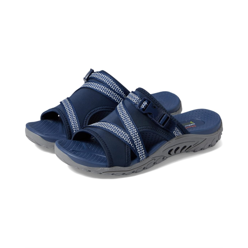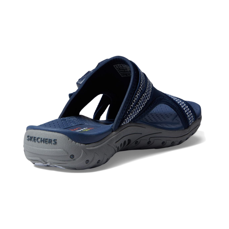 - Enjoy endless comfort and flexibility as you walk down the streets or the trails wearing the SKECHERS Reggae - Slide Thru Sandals.