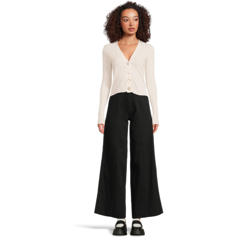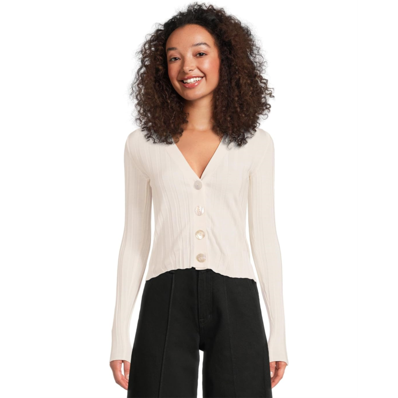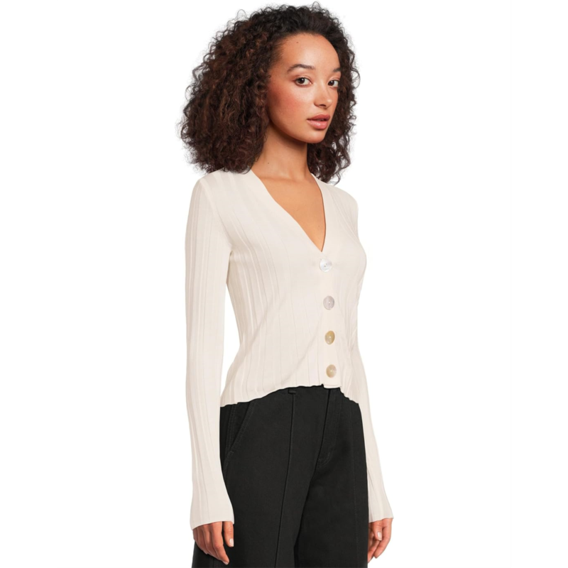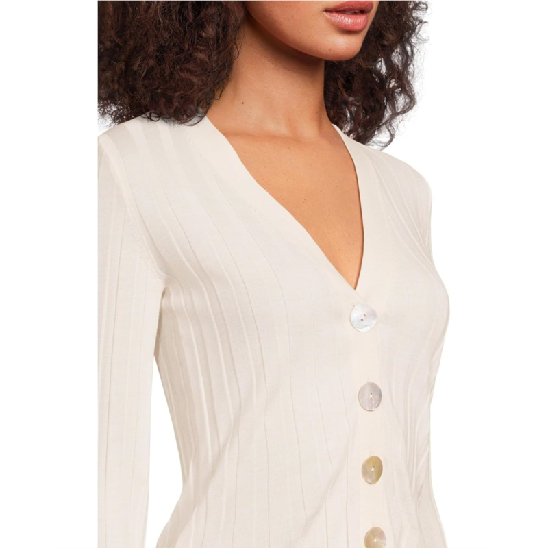 - Complement your chic style with the Madewell Merino Silk Akila Wide Rib Cardigan. Featuring a V-neckline with a front button closure, long sleeves, wide ribbed knit, and a straight hem.