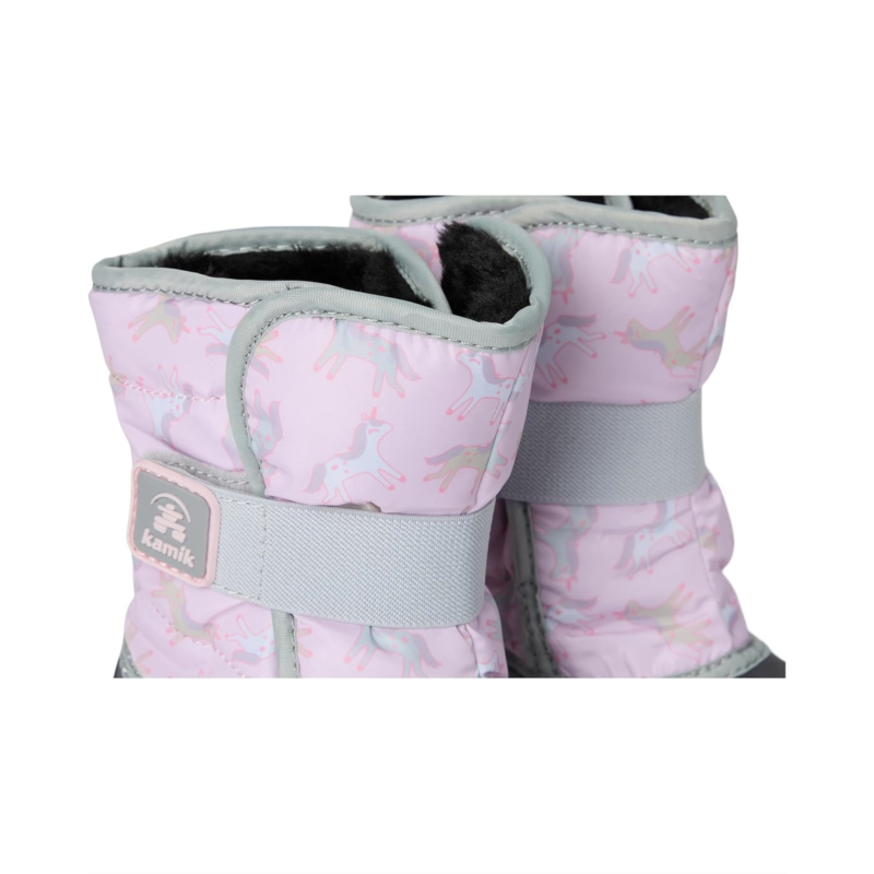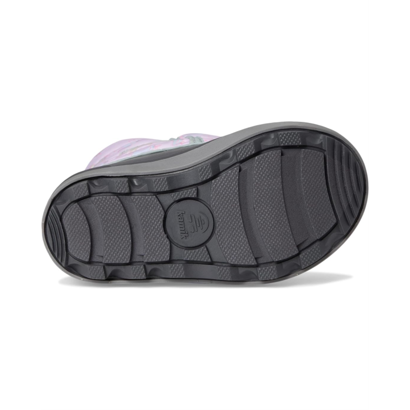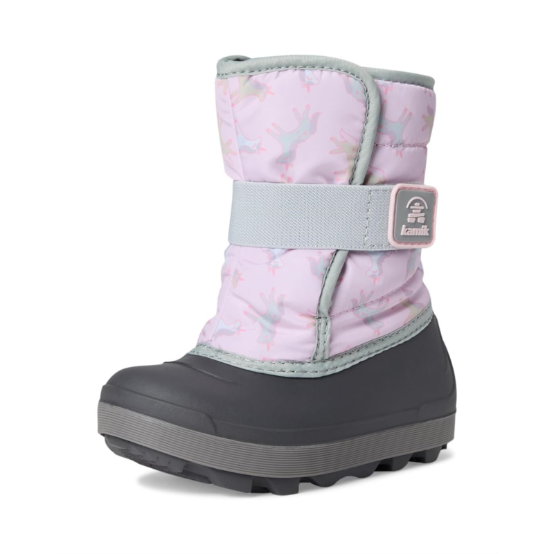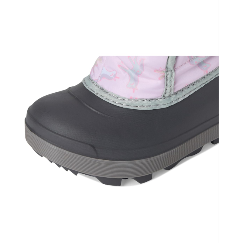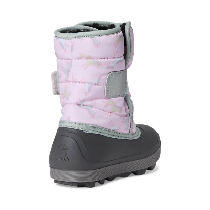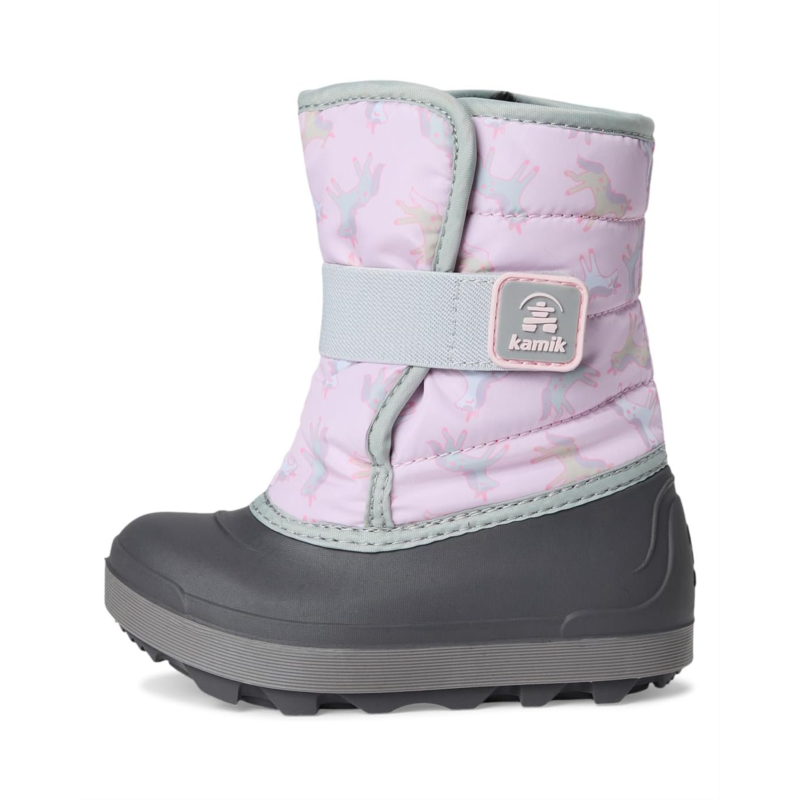 - With an adorable cold-ready print, the Snowbug 7P by Kamik Kids turns every snowy adventure into a cozy, giggle-filled journey! Designed for toddlers with boundless energy, these mid-rise winter boots feature a waterproof nylon upper that braves slush, snow, and puddles with ease. Slip-on simplicity meets adjustable strap convenience, making getting ready a breeze for both kids and parents. Inside, plush faux fur lining and insole cradle tiny toes in warmth down to -10ºF, while moisture-wicking comfort keeps feet dry all day. The lightweight synthetic rubber outsole delivers reliable grip and stability on frosty surfaces, so every step is safe and confident.