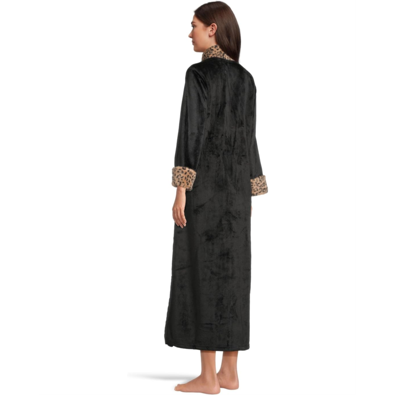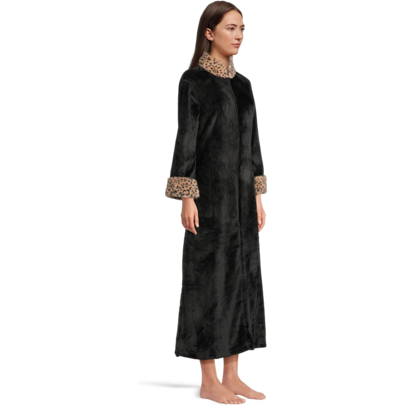 [US] Womens N by Natori Plush Lynx Mandarin Zip Caftan