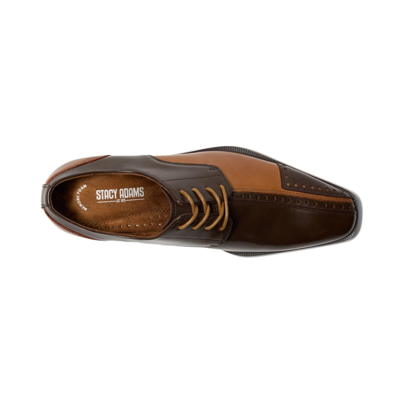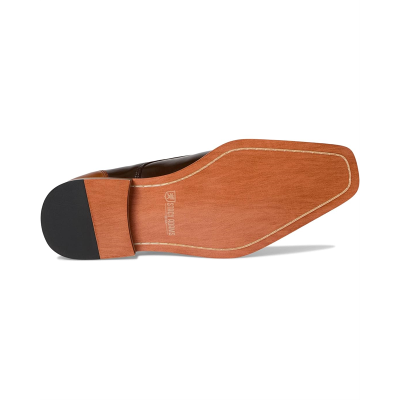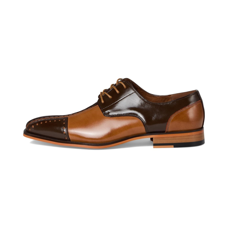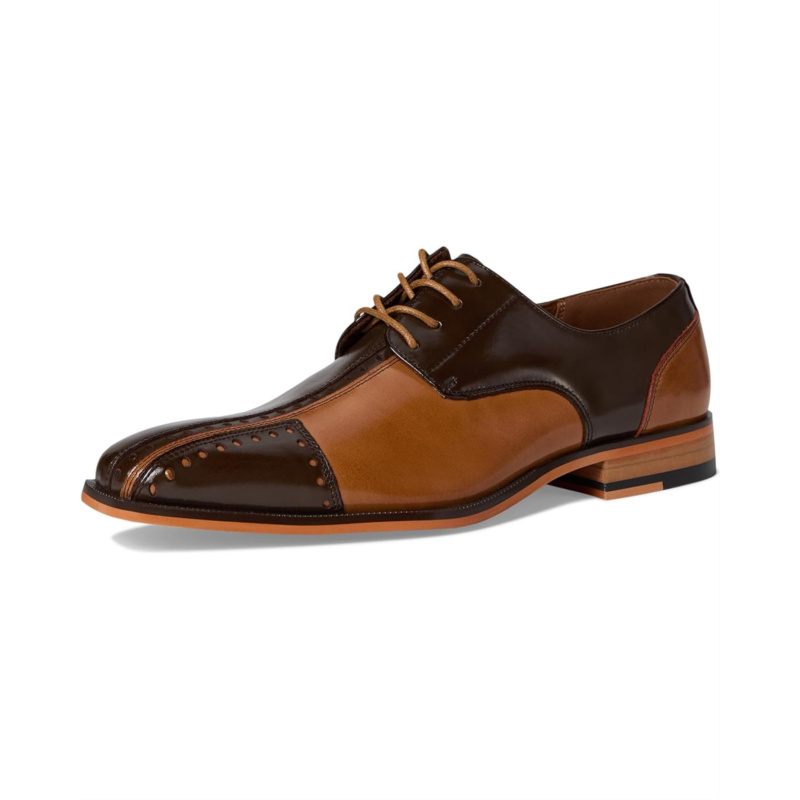 - Add a fashion-forward touch to any look choosing the Stacy Adams Palmento Modified Cap Toe Oxford. Featuring a rich leather upper with a sleek silhouette and stacked heel, this shoe is the perfect choice to dress up everything from your best suit to your favorite jeans. The low-top style has a fully cushioned, microfiber-covered insole with memory foam for all-day comfort and microfiber lining for added comfort.
