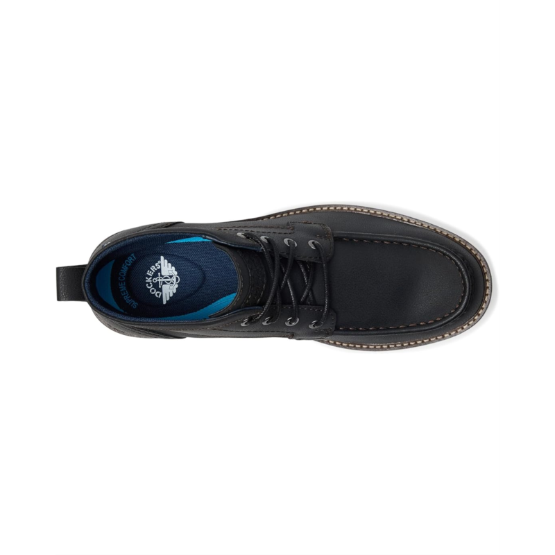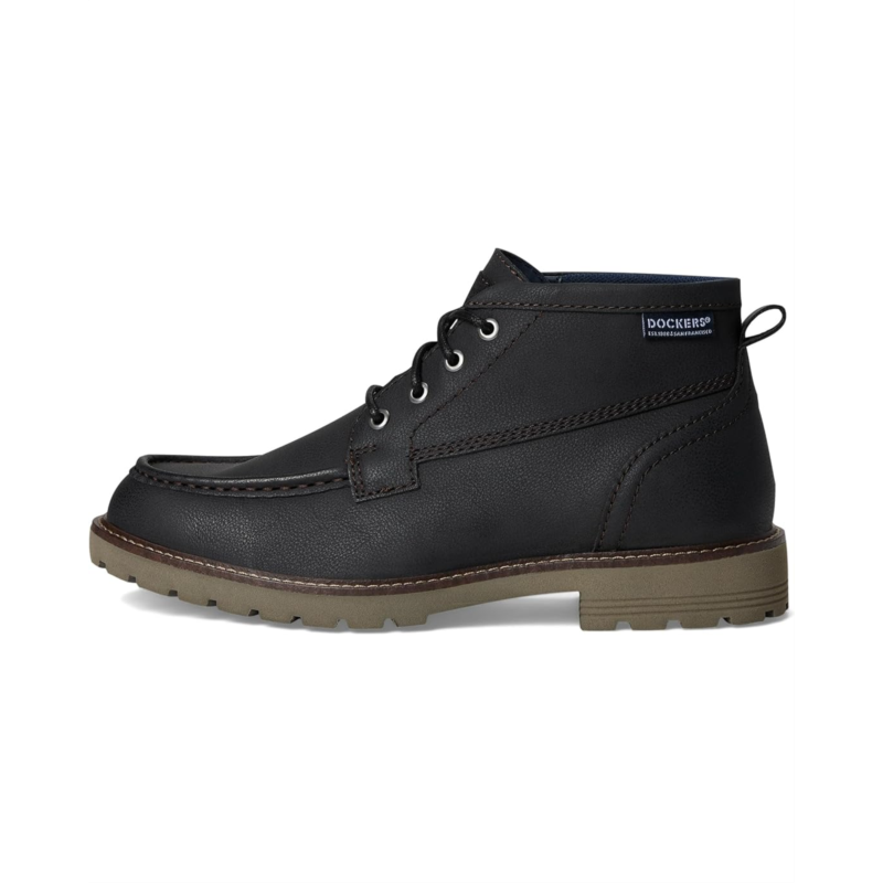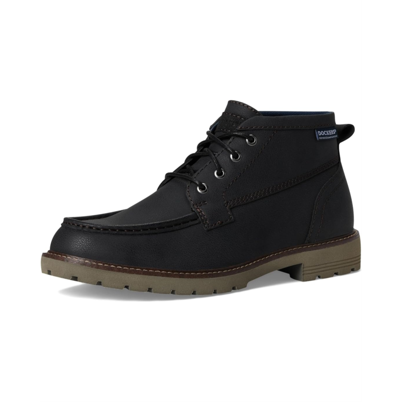 - The Dockers Weston Moc Toe Boot redefines everyday sophistication. Crafted with a polished faux leather upper and outsole, this ankle-high lace-up pairs classic refinement with a touch of durability, making it the perfect choice for workdays, weekends, and everything in between. The moc toe design adds timeless appeal, while the block heel enhances stability without sacrificing sleekness. Inside, a Supreme Comfort EVA insole provides personalized cushioning and moisture-wicking breathability to keep you fresh all day. A polyester lining and quilted microfiber counter lining boost comfort and ventilation, ensuring a smooth wear experience. Finished with a lightweight, lugged EVA outsole with applied welt, these boots deliver dependable traction while maintaining a streamlined silhouette.