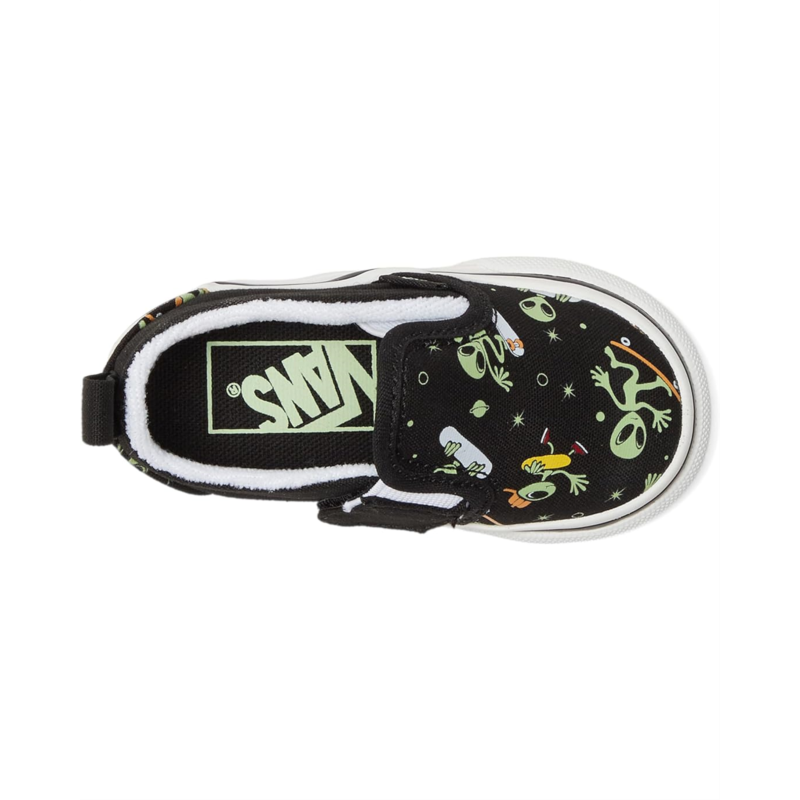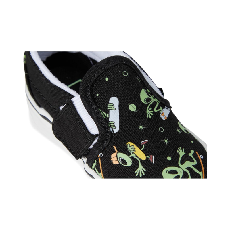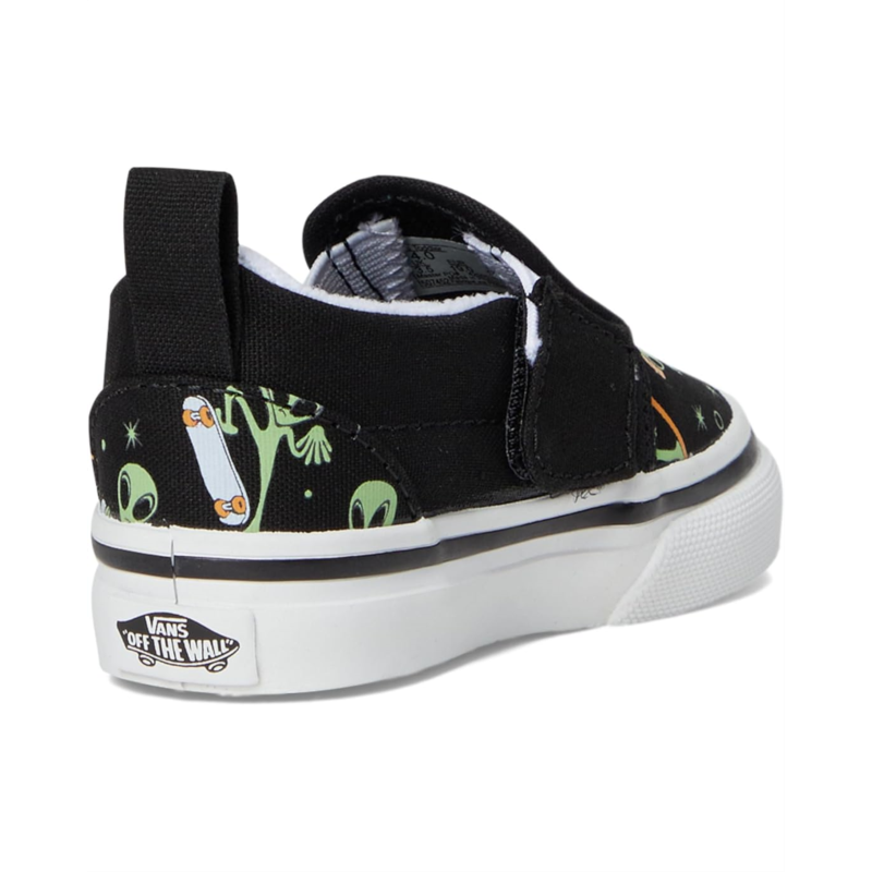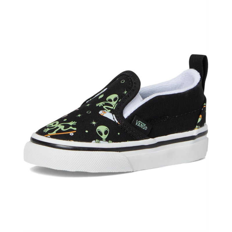 - The perfect gift for your little one, the Vans Kids Slip-On V Shoes. The low-top shoes are crafted with a canvas upper with printed details for a durable and classic look. The padded collar allows for enhanced support and comfort, while the side hook-and-loop closures provide easy on and off. Plus, the ankle pull tab allows easy donning and doffing.