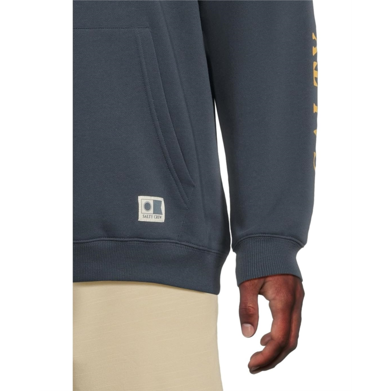 - Stay warm, stay wild, and ride the waves of comfort wearing the Salty Crew Refuge Fleece. Designed in a classic fit, this fleece offers effortless layering and a relaxed vibe that pairs perfectly with your coastal lifestyle. The hooded neck with adjustable drawcord keeps you shielded from cool breezes, while the long sleeves and easy pull-on style make it a grab-and-go favorite. A kangaroo pocket adds both style and function, giving you a cozy spot to warm your hands or stash small essentials. Signature details like the woven label on the lower left pocket and a screenprinted left sleeve elevate the look with authentic Salty Crew energy.