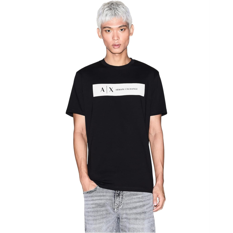 - The Armani Exchange Box Chest Logo T-shirt is perfect for everyday wear. It features a box logo, crewneck neckline and short sleeves. The style is made from cotton and is a regular fit.