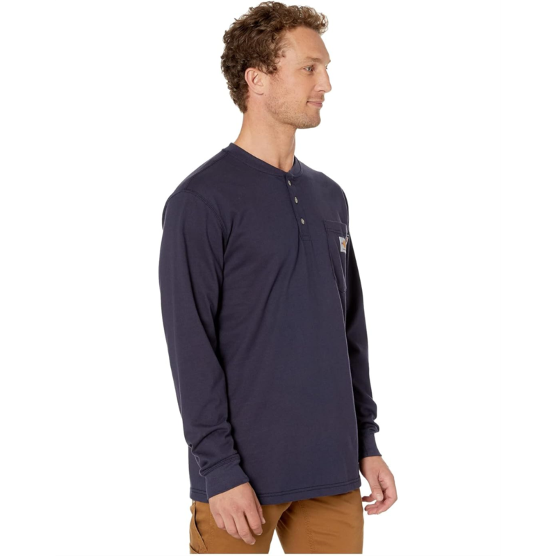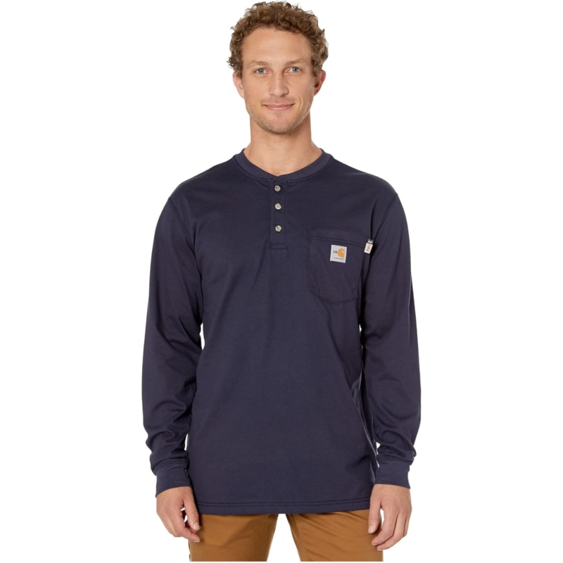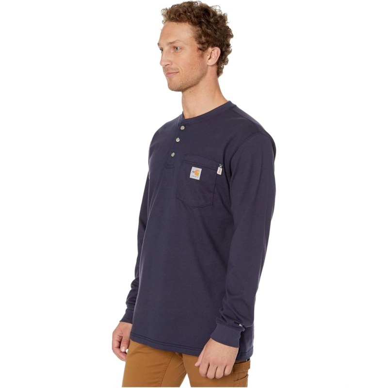 - Protect yourself from flames on the job or at home in the action-ready Carhartt Flame-Resistant (FR) Force Cotton Long Sleeve Henley.