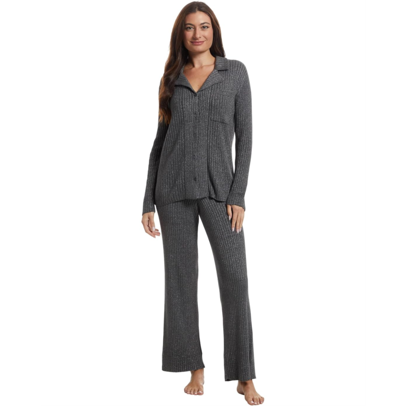 Womens Barefoot Dreams CozyChic Ultra Lite Lurex Rib Bottom Front Shirt