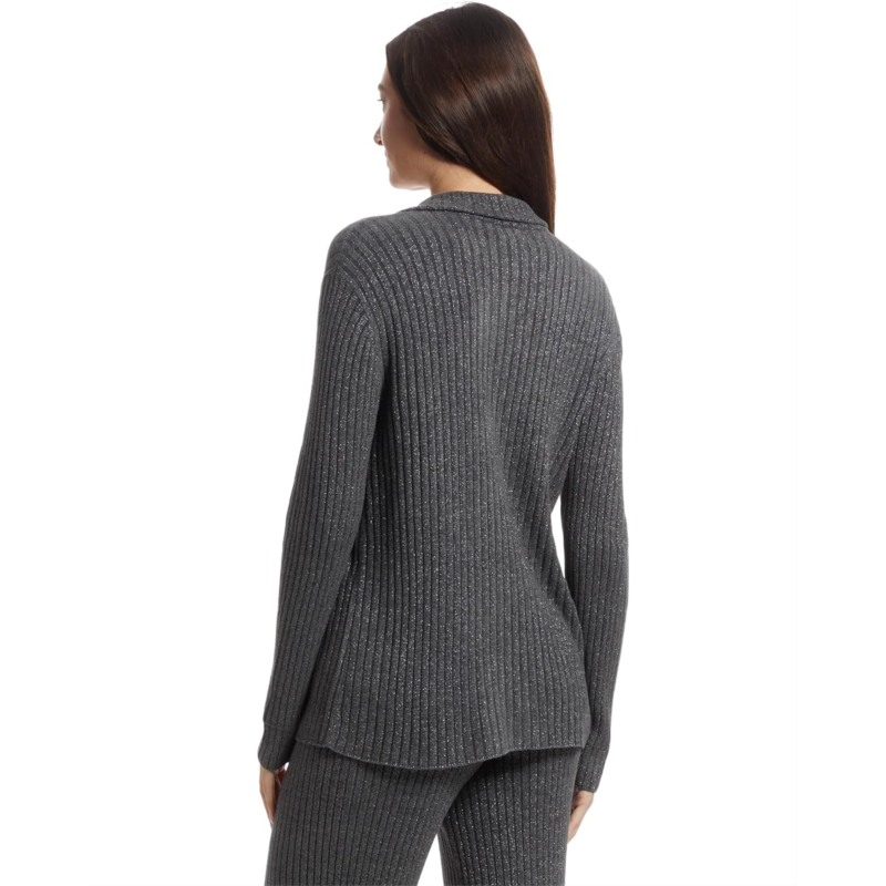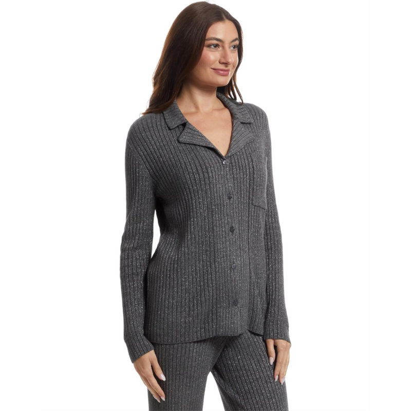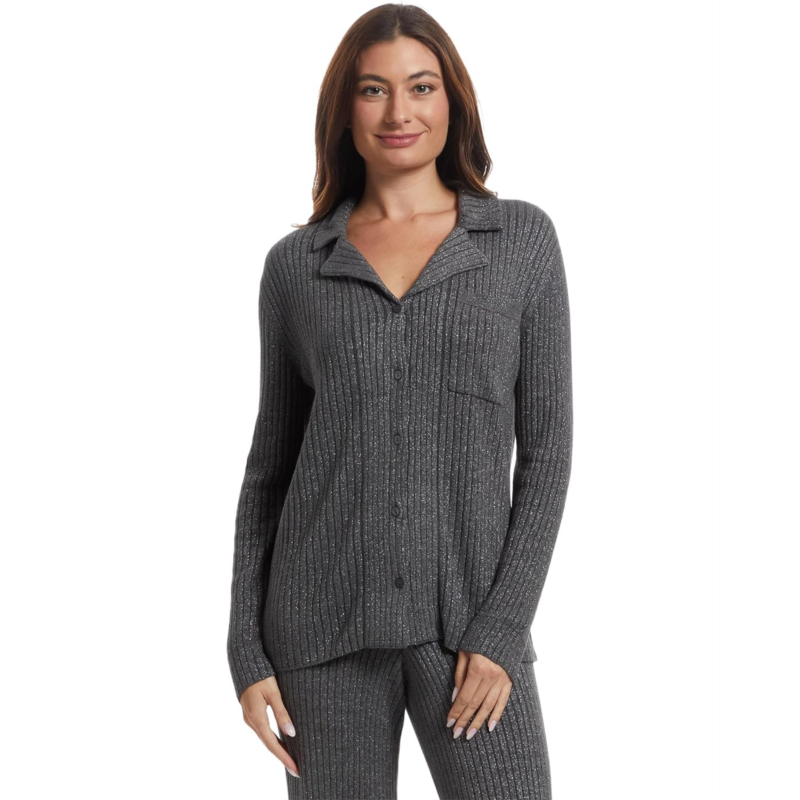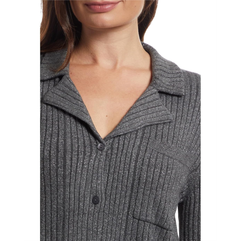 [US] Womens Barefoot Dreams CozyChic Ultra Lite Lurex Rib Bottom Front Shirt