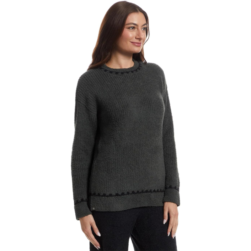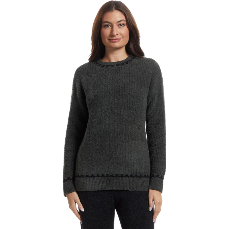 [US] Womens Barefoot Dreams Cozychic Ribbed Sweater With Blanket Stitch