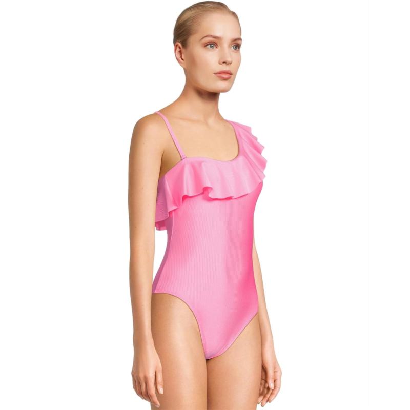 Make swim time and beach vacations more fun wearing Lilly Pulitzer Caelum Ruffle One Piece. The pull-on style, breathable one piece features a one-shoulder design with ruffle details, an adjustable shoulder strap, and regular-cut legs.
