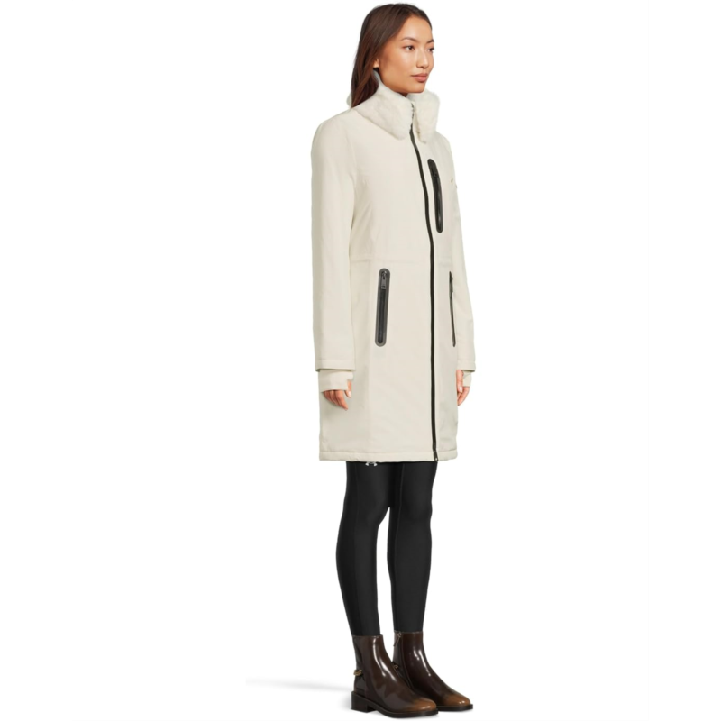 Stay sleek, stay unstoppable - this MICHAEL Michael Kors Anorak with Inside Quilting is the ultimate fusion of fashion and function. Designed for the modern trendsetter, this zippered front active anorak delivers polished style and all-weather comfort in one statement layer. The button-off faux fur collar adds a luxe, versatile touch. Wear it for extra warmth and glamor or remove it for a clean, streamlined look. A vertical zippered chest pocket brings a sporty edge, while two zippered waist pockets offer secure storage for on-the-go essentials. Long sleeves with rib knit cuffs lock in warmth, ensuring you stay cozy without sacrificing movement. Inside quilting enhances insulation, making it a go-to jacket for transitional weather or cool city nights.