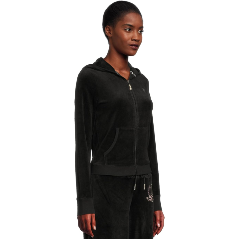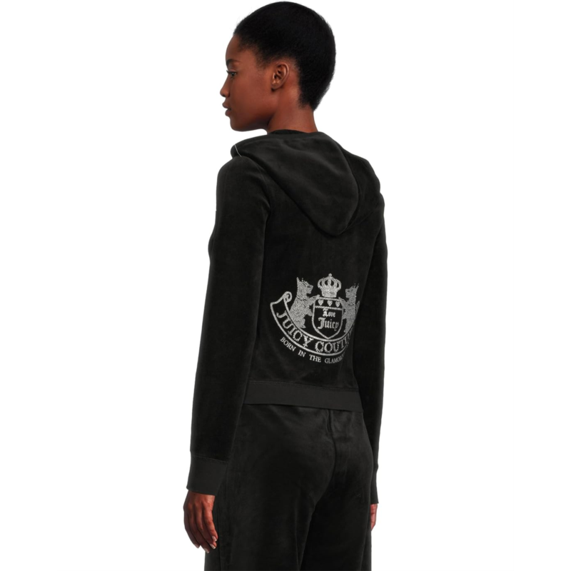 Step into iconic vibes with a modern twist, Juicy Couture brings back the glam in everyday comfort with the Heritage Rib Trim Kangaroo Pocket Track With Back. Designed to blend signature street style with cozy wearability, this track piece features a full zippered front closure for easy layering and a relaxed hooded neck that adds an effortless cool factor. The long sleeves and ribbed trim keep your look sharp while ensuring all-day comfort, while the roomy kangaroo pocket delivers both function and laid-back flair. A standout detail, the brand name shines boldly across the chest, showcasing Juicy''s signature heritage style.