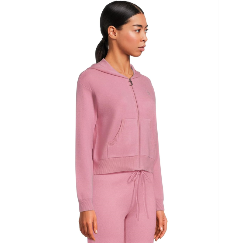 Snuggle up in style choosing the Juicy Couture Sweater Track Jacket! Crafted from a soft-knit material, this midweight jacket boasts a hooded neckline, long sleeves, and a zippered front closure for ultimate comfort. Complete with our iconic rhinestone logo on the left chest and back, this knit cropped jacket is sure to turn heads wherever you go.
