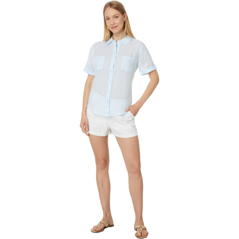 Designed to match your everyday comfort and style, the Lilly Pulitzer Lynnie Button-Down shirt is a perfect choice to match your casual, laid-back styles. The buttoned front closure of the shirt offers easy wear while the linen fabric provides superior comfort and breathability. This button-down shirt is styled with short sleeves, a collared neckline, and a straight hem. Stay stylish and comfy all day wearing this button-down shirt.