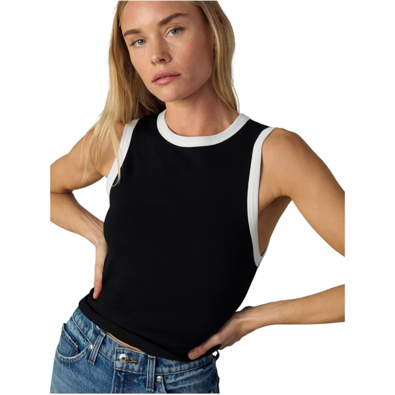 Carry the effortless edge look for everyday wearing the Joe''s Jeans The High Neck Tank. This top features high neckline, sleeveless style, contrast piping details on the neck and armhole, regular fit, and straight hem.
