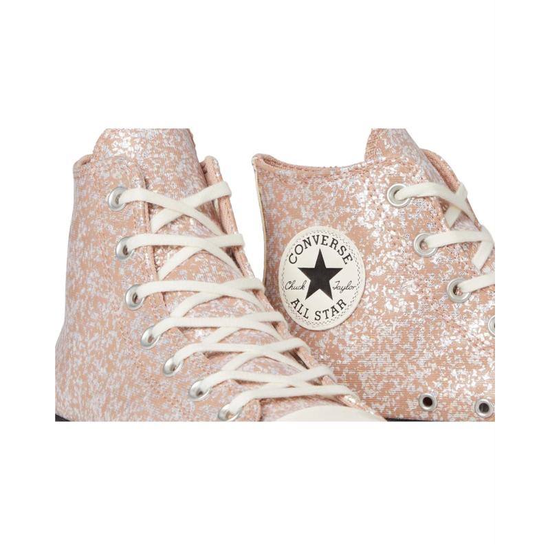 Get lifted in every step styling Converse Chuck Taylor All Star High Top Platform Shinefetti Sneaker-where iconic meets elevated. Featuring a premium leather upper and a bold double-stacked platform sole, this sneaker adds height while keeping all the classic details like the signature star ankle patch and ''All Star'' heel plate. A rubber toe bumper and cap offer durability, while the EVA cushioning ensures all-day comfort. Lace up and shine with every step in this timeless yet trend-forward silhouette-perfect for making a statement from the streets to the stage