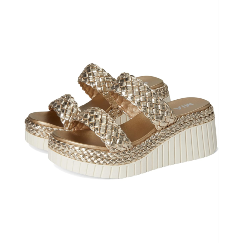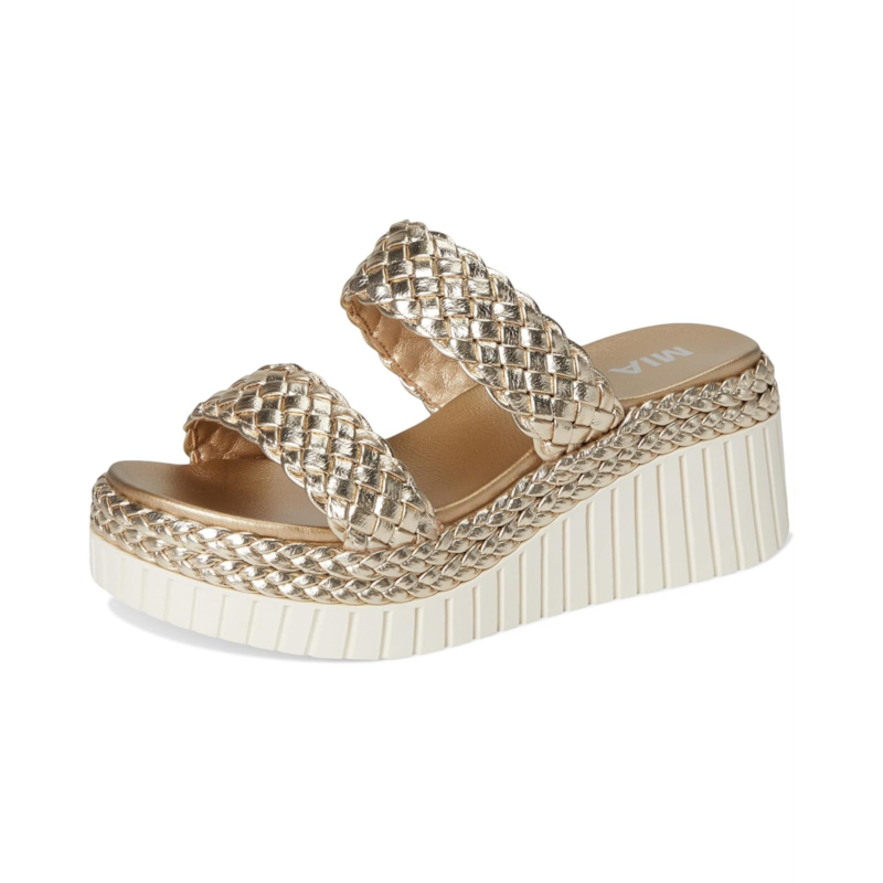 Give your feet the comfort they deserve while still looking pretty in the MIA Yoshi Sandals. The open round-toe, slip-on style sandals are crafted with a faux leather upper with two braided straps. The faux leather lining and anatomical faux leather insole improves the comfort, while the wedge heel detail elevates the style statement.