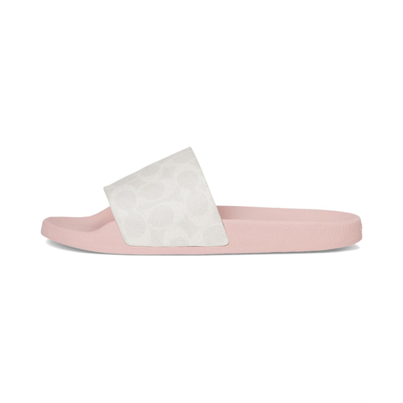 Wherever youre heading this summer, the COACH Udele Slide is ready to come with! The slip-on sandal is constructed from a textured leather upper with a signature C print throughout.