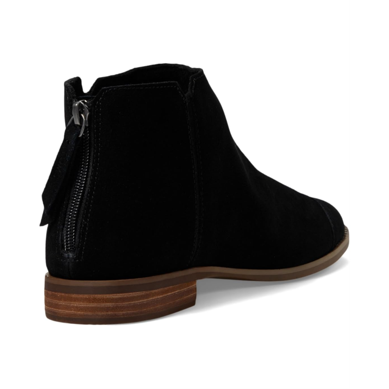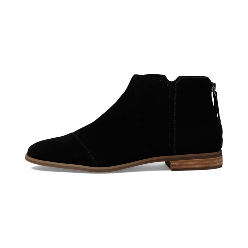 Conquer the day wearing the classic TOMS Rylie. Crafted from suede upper, polyester lining, and polyurethane insole, this pair of flat ankle booties features zippered back closure, almond toe, topline cutout detailing with quarter underlay, and stacked leather wrapped heel for a modern look.