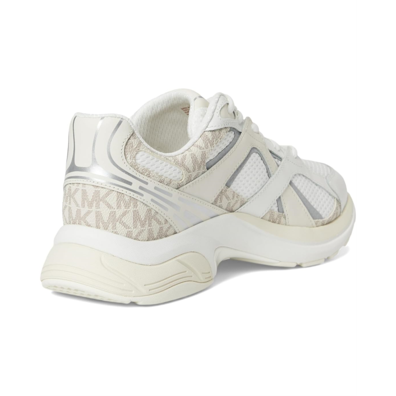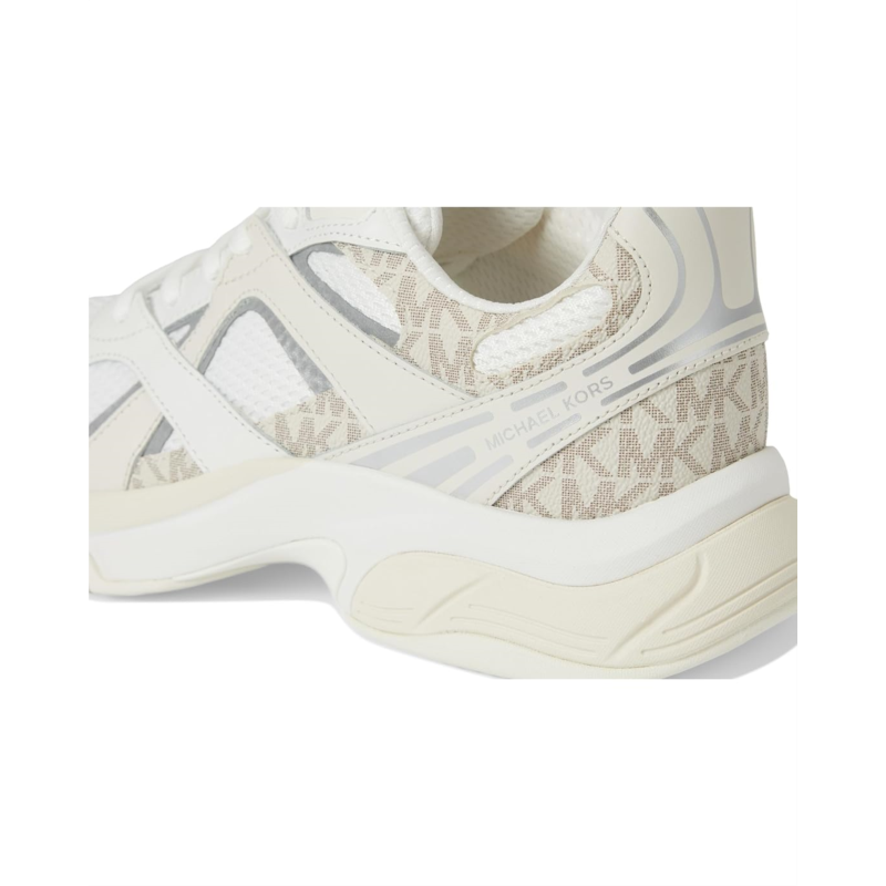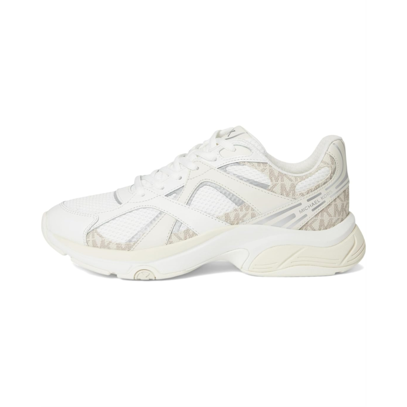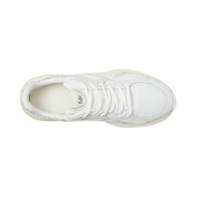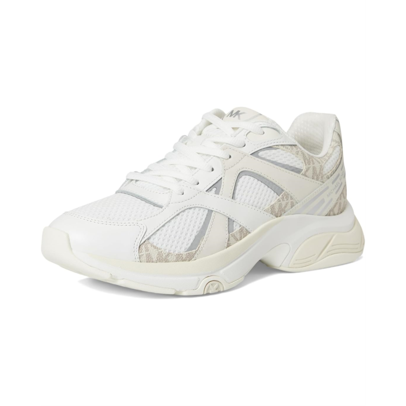 The Michael Kors Leo Trainer is a modern and dynamic design perfect for material and color mixing. Featuring intricate multi-layered design and high quality material fabrications. Crafted from nylon upper, polyester lining, and EVA insole, this pair of shoes features round toe, lace-up closure, MK empire signature logo paneling, and lightweight construction.