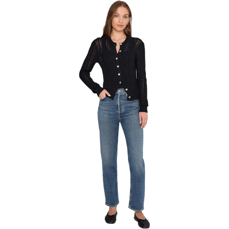 - Effortless chic meets cozy sophistication, Madewell Alpaca Pointelle Leland Cardigan is the perfect layering piece your wardrobes been waiting for. Designed in a regular fit, this cardigan drapes beautifully without feeling bulky, making it an easy go-to for every season. The lightweight alpaca-blend fabric brings a soft, breathable touch while its pointelle detailing adds a hint of texture and feminine charm. Featuring long sleeves with subtle stripe Taylor femme accents, it delivers a stylish twist on classic comfort. The crew neck and button-front closure allow versatile styling, whether worn open over a tee or buttoned up for a polished look.