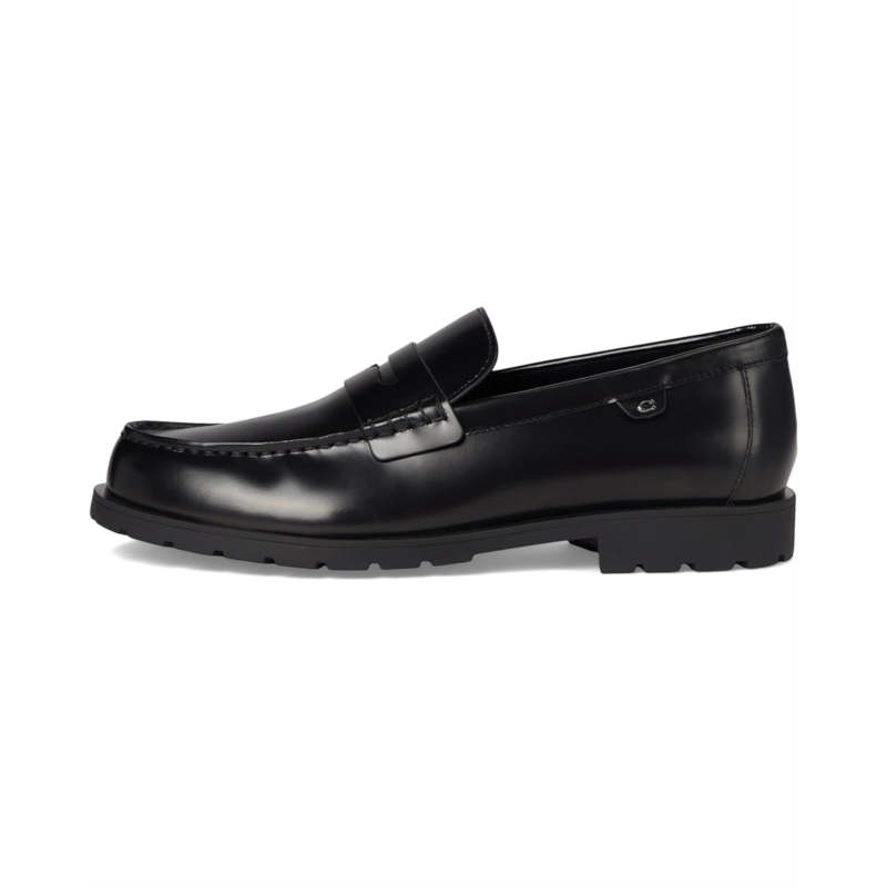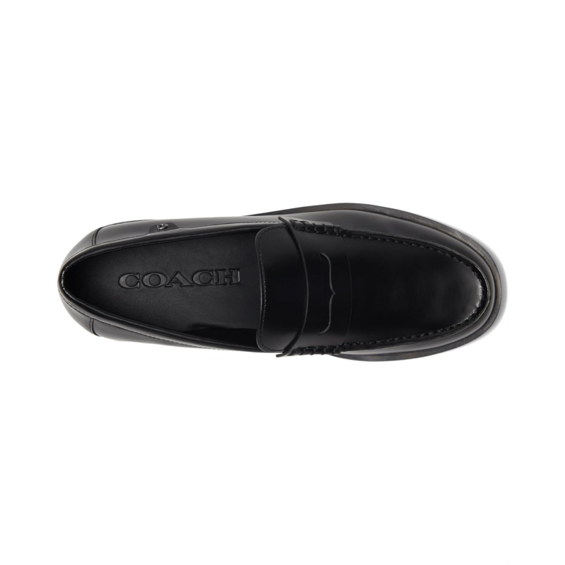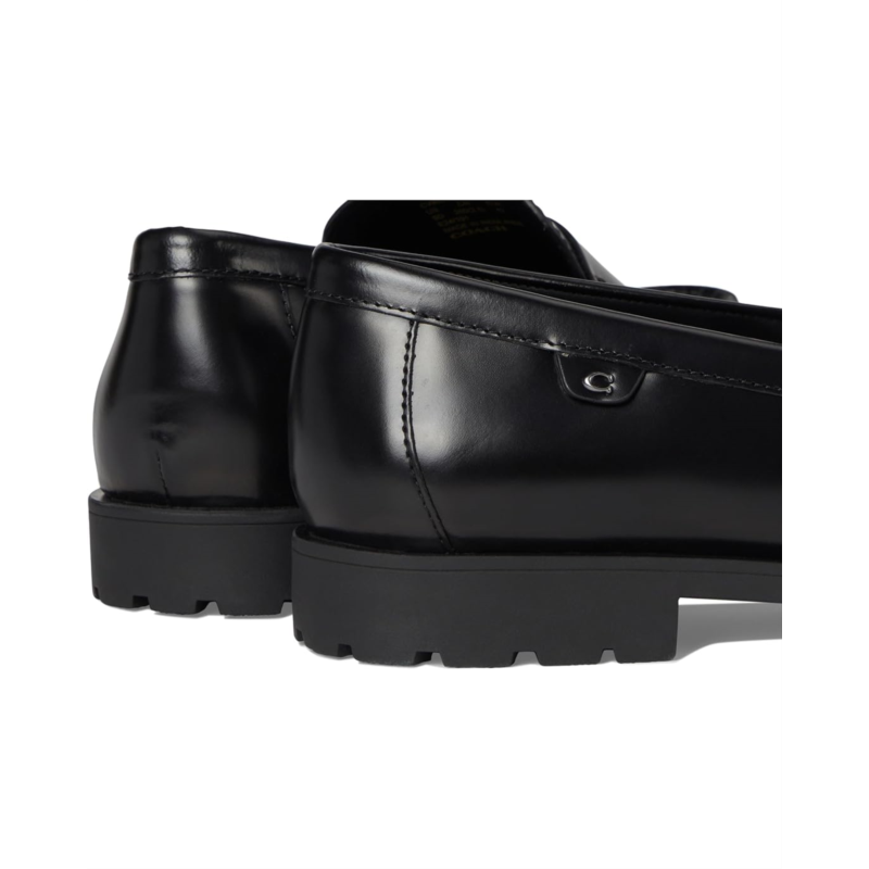 Sleek and polished. Complement your effortless style from morning to night in the COACH Reagan Loafer. These slip-on style loafers feature a round toe silhouette, crafted from a smooth leather upper with a penny slot on the vamp, man-made leather lining and a leather footbed.