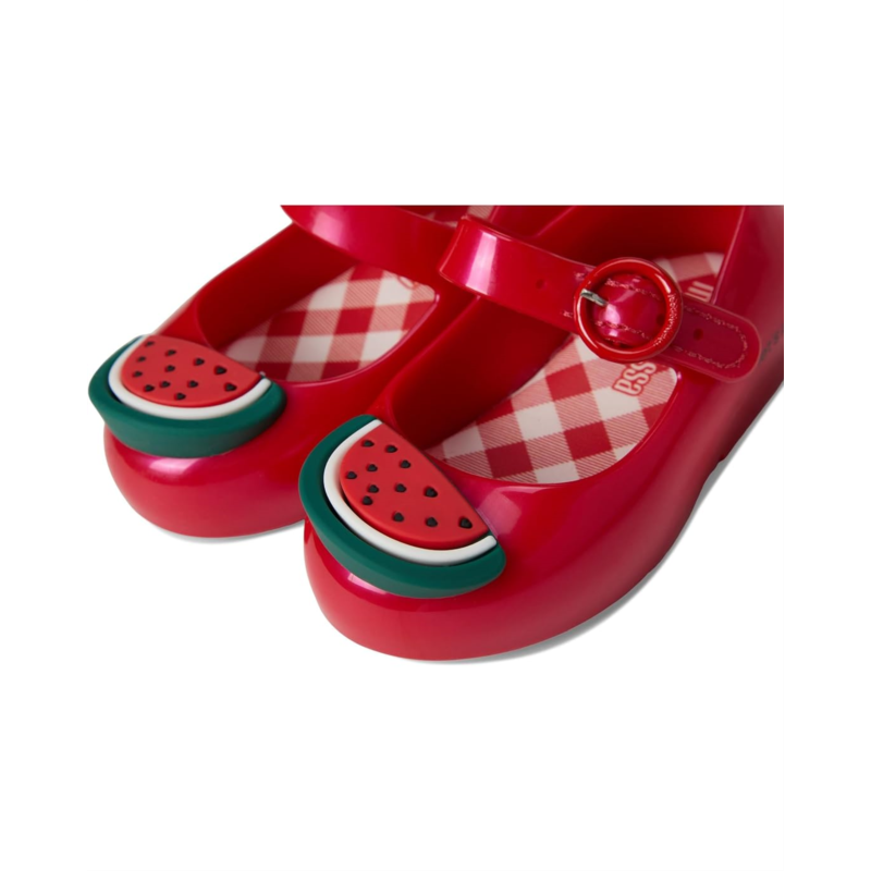The Mini Melissa Sweet Love Picnic Baby shoes are ballet shoes that feature light-as-air construction for all-day comfort. They are made of a picnic blanket-patterned Grenflex insole for flexible comfort. The 100% recycled MelFlex PVC upper is styled with floral decals and an adjustable buckle closure while the waterproof construction keeps your kid''s feet dry. Durable, flexible, and hypoallergenic, these Mary Jane shoes are a part of the Mini Melissa Sweet Love Picnic collection.