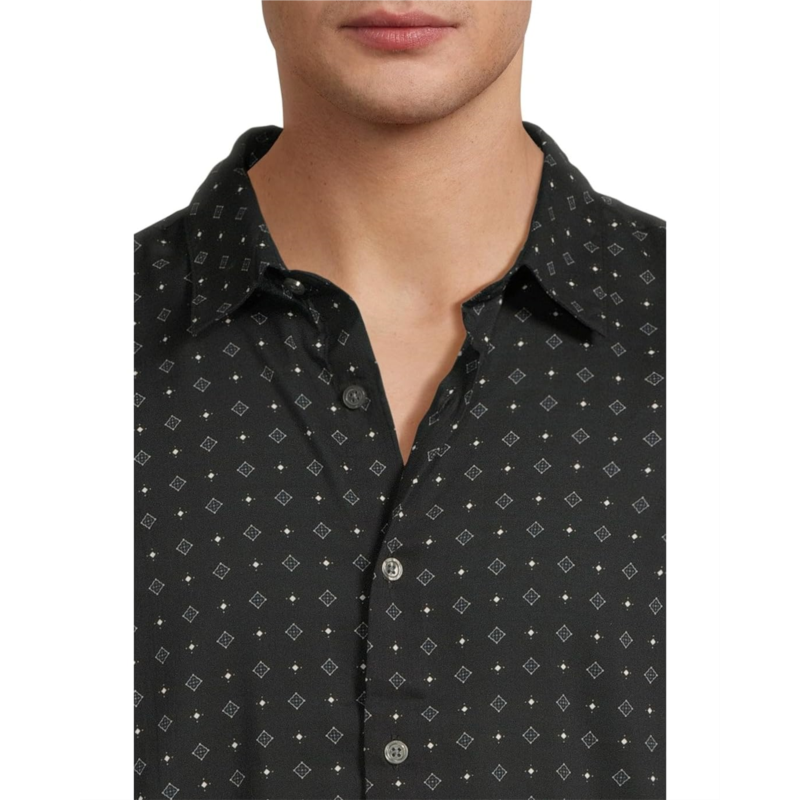 The John Varvatos Luca Shirt W985W25 is cut in a soft, drapey linen that offers ease and light structure. A watercolor base layered with a damask overprint creates nuanced visual depth, while the button-up placket and slim fit add a refined, tailored edge.