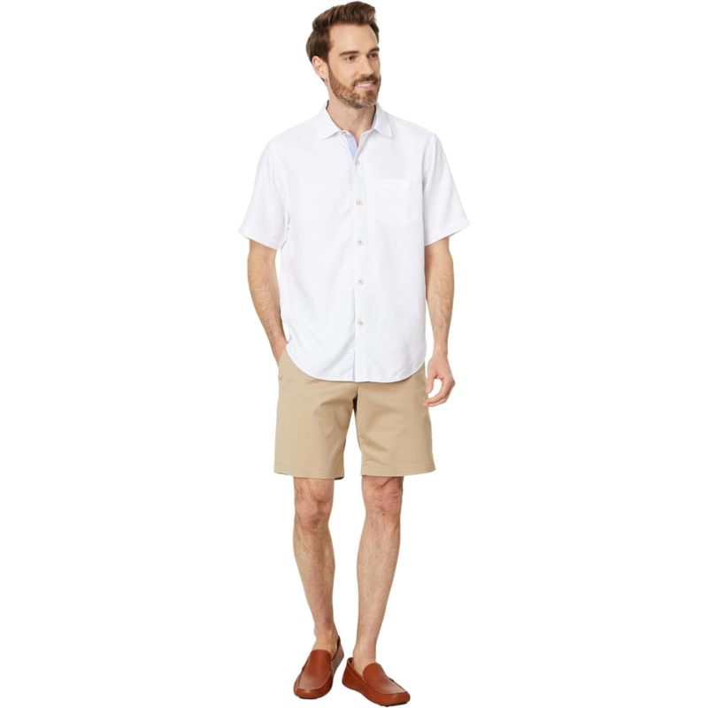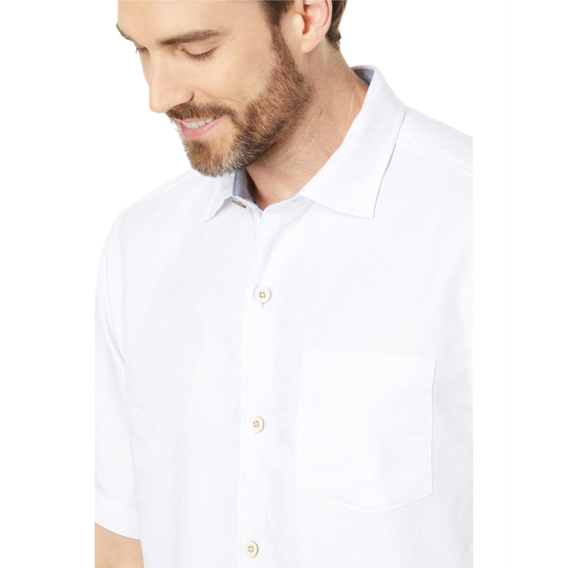 Discover the beauty of sleek and sophisticated charm wearing Tommy Bahama Coconut Point Keep It Frondly Shirt. It features a collared neckline, short sleeves, straight back yoke, and buttoned front closure.