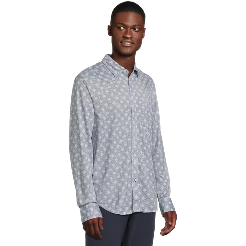 Meet the Tommy Bahama San Lucio Mira Mosaic Shirt, where polished meets playful. Designed with a regular fit and crafted from stretch-infused fabric, this long-sleeve button-down moves with you, whether youre beachside or boardroom-bound. The allover mosaic print adds a pop of personality, while the collared neck, chest pocket, and buttoned cuffs keep it classically cool. Wrinkle-resistant for easy care and endlessly versatile for every occasion. Finished with a subtle embroidered Marlin logo at the hem, its a nod to the island spirit that defines Tommy Bahama.