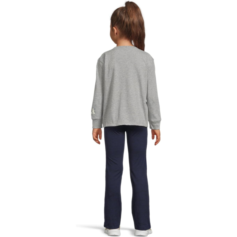 The adidas Kids Graphic Heather Tee Flare Pant Set brings big energy with style that''s made to move. Designed with a cozy ribbed crew neck and long sleeves with snug cuffs, the tee delivers effortless comfort and cool-weather coverage. Bold screen-printed graphics and a dreamy three-bar logo cloud skyline on the sleeve add serious street cred, while the ''adidas outdoor'' lettering on the chest brings iconic flair. The mid-rise pants feature an encased elasticized waistband for a comfy, flexible fit and standout flared legs that bring retro charm to every step. Complete with three bold stripes down the side seams, this regular-fit duo is all about everyday play with a sporty edge.