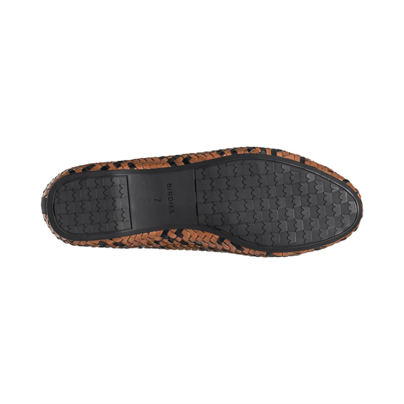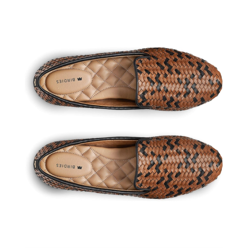 - Still our #1 silhouette, the Birdies Starling Woven Flat. Just a lot more depth and texture, thanks to a fresh (vegan!) weave. Socks, prepare to be knocked off. Basketweave flat crafted of vegan faux leather. Rated five-star fabulous by 15,000+ women. No-slip rubber sole for indoor + outdoor wear. 7 layers of quilted comfort in every footbed. Smoking slipper with 10 mm heel.